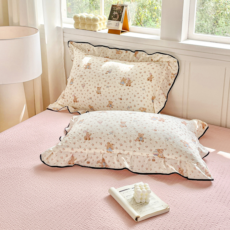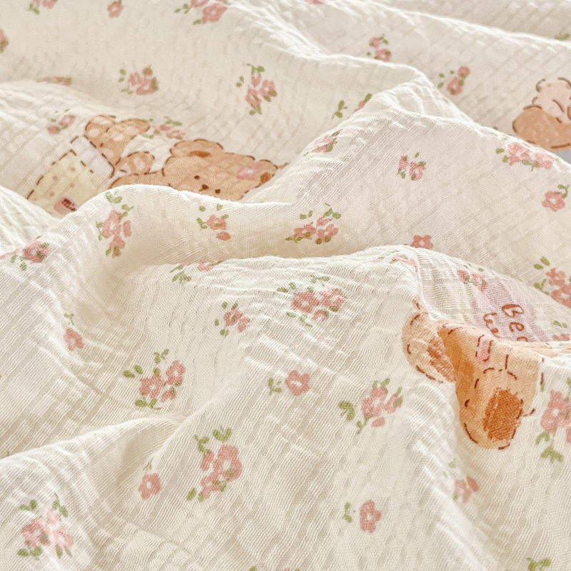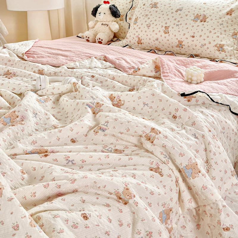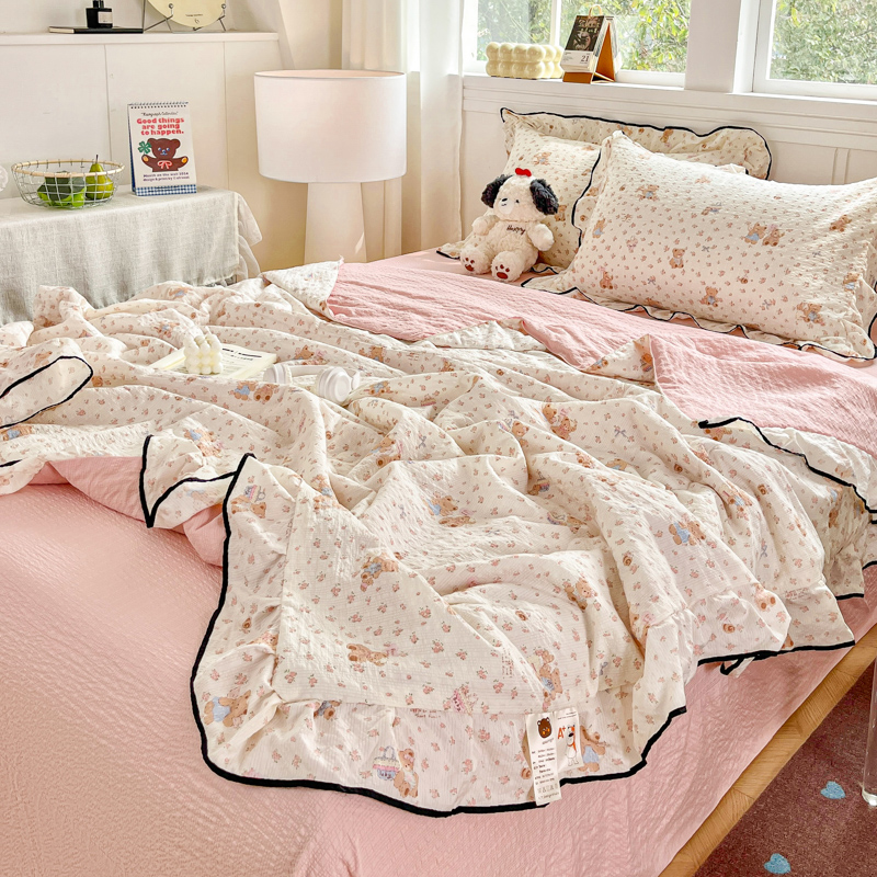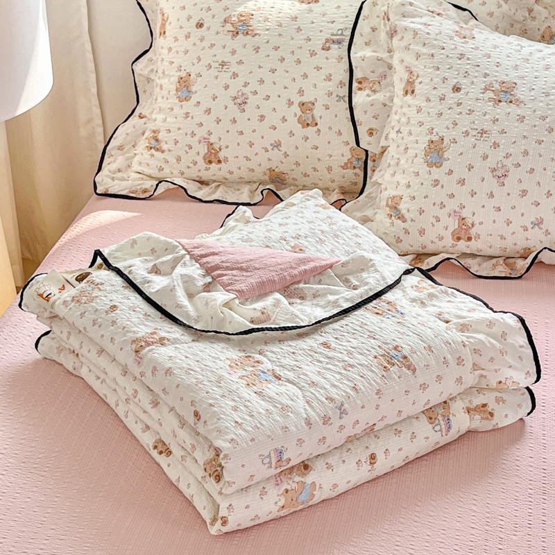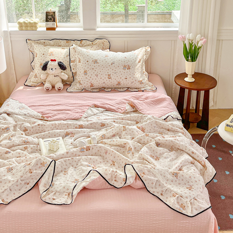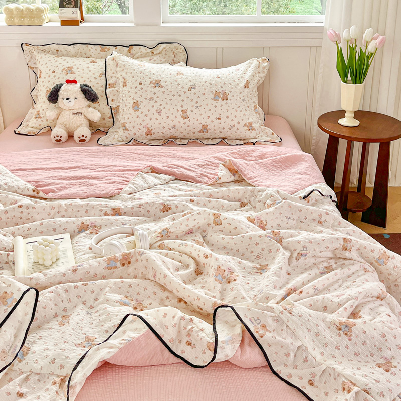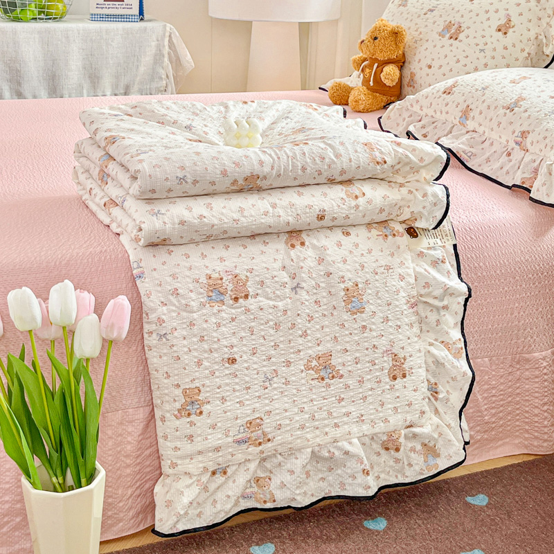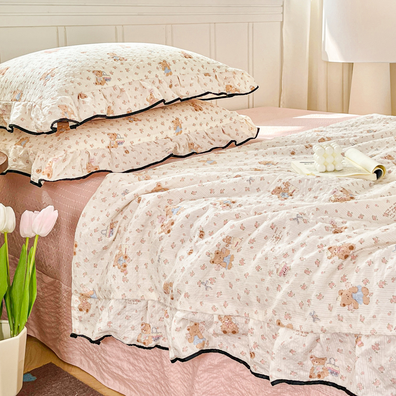 利禾家纺 2026新款法式花边泡芙纱夏被四件套 生日熊