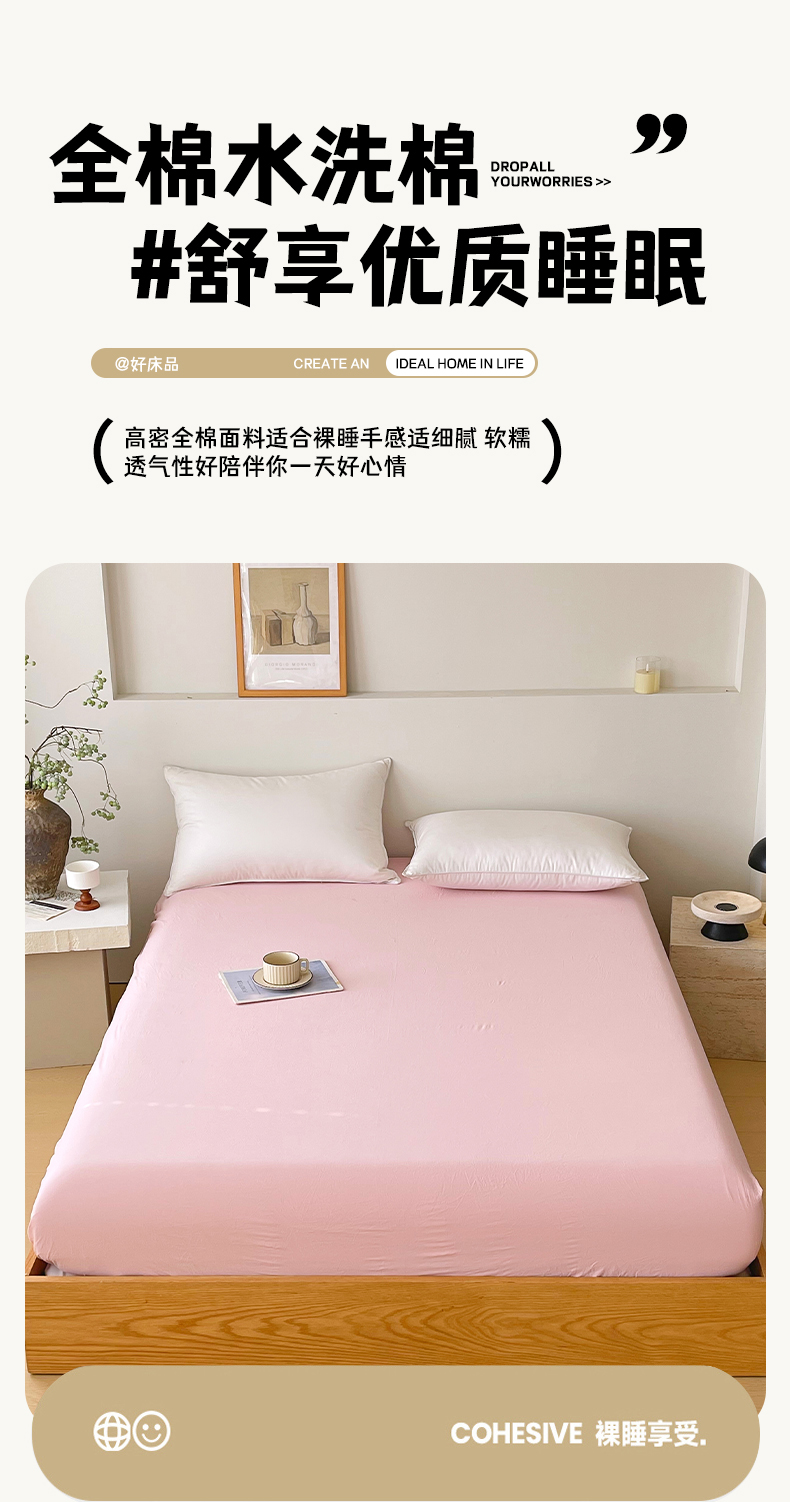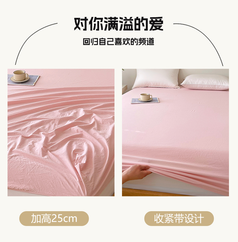 春皖家纺 2026春夏新款双拼全棉纯棉水洗棉单床笠 床笠单件 樱花粉