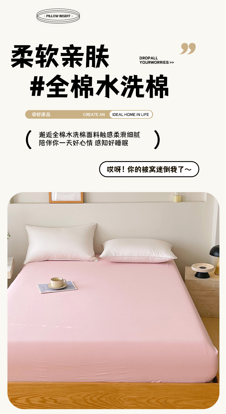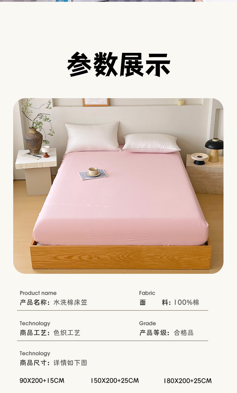 商品名称:春皖家纺 2026春夏新款双拼全棉纯棉水洗棉单床笠 床笠单件 樱花粉