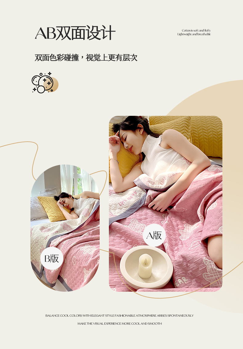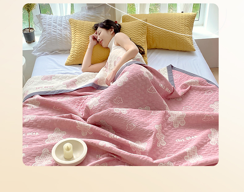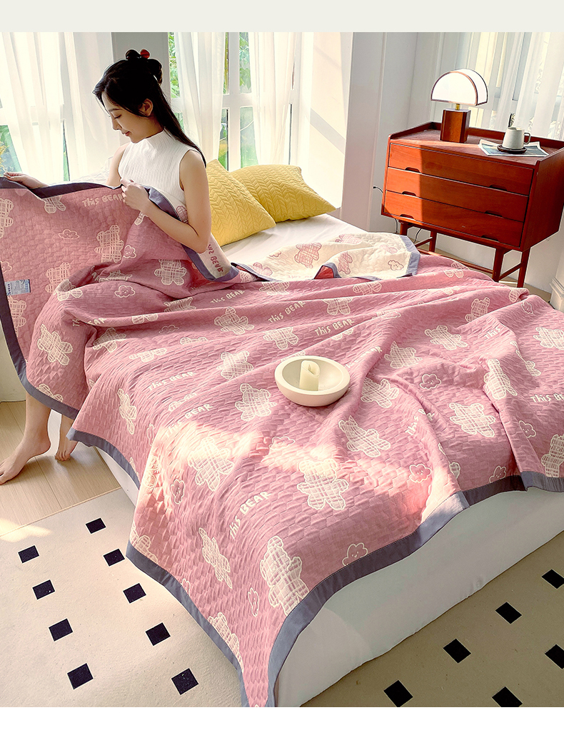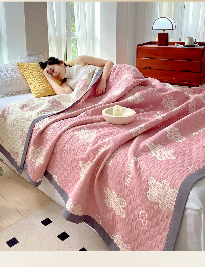 商品名称:云天家纺 2026新款A类全棉三层纱多功能毛巾被(盖毯床单夏被) 云朵小熊-粉