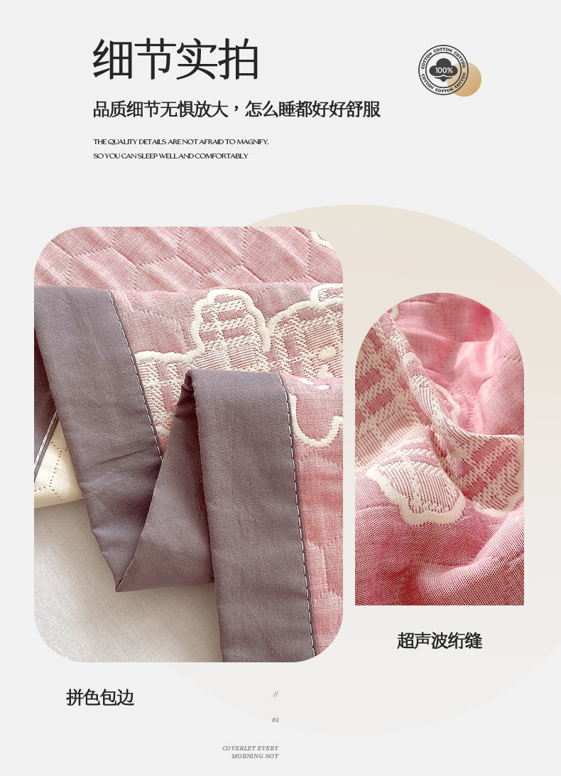 云天家纺 2026新款A类全棉三层纱多功能毛巾被(盖毯床单夏被) 菠萝气泡-粉,菠萝气泡-粉