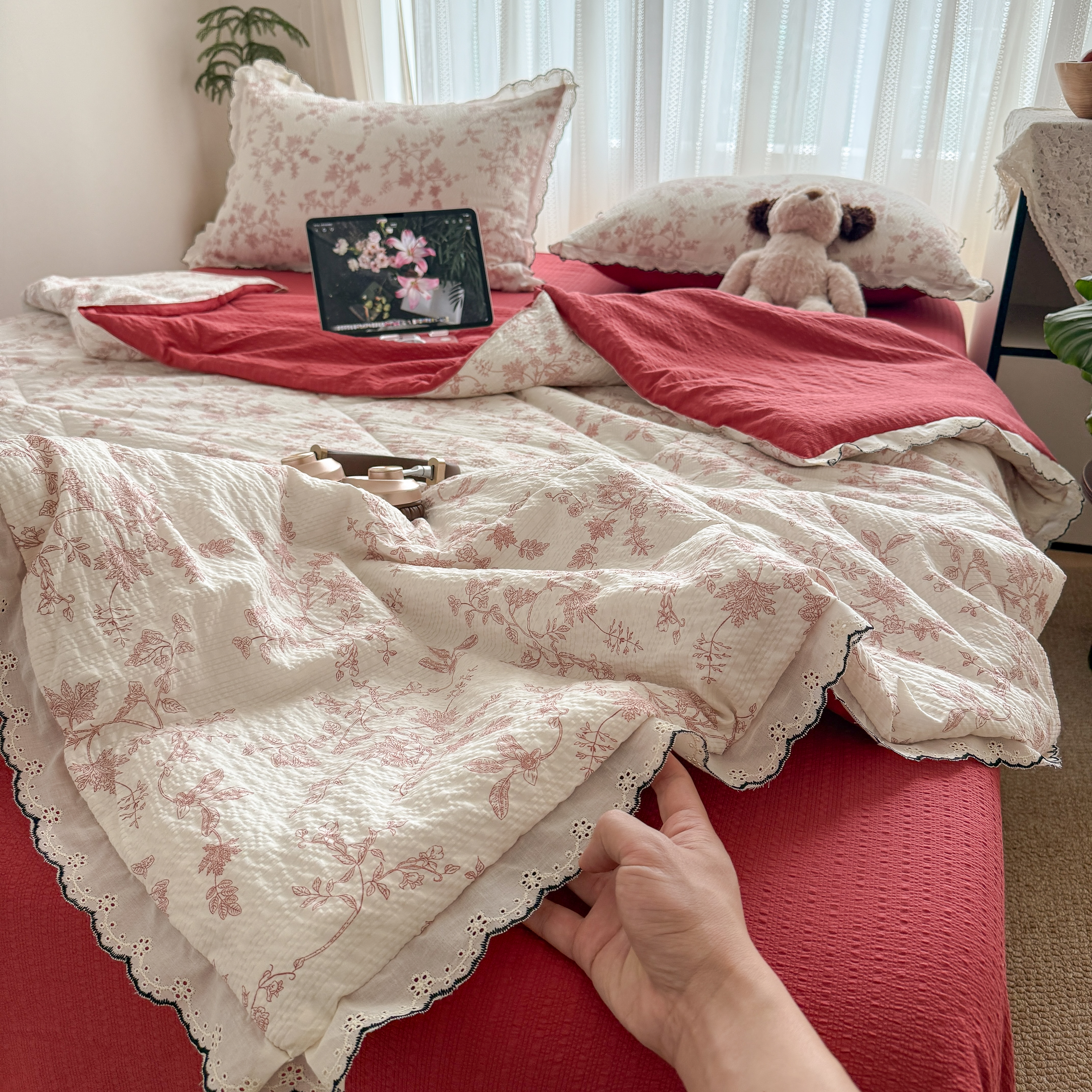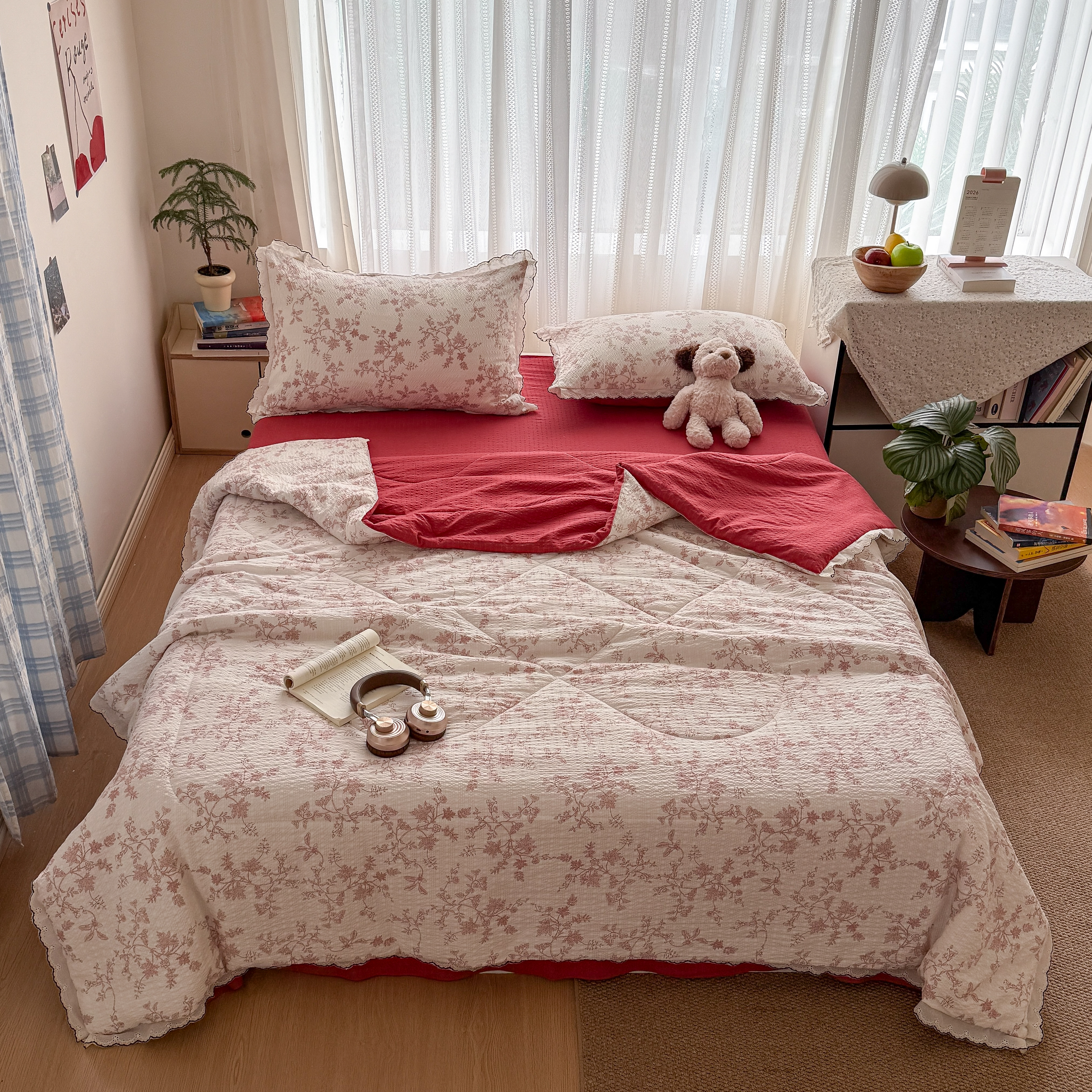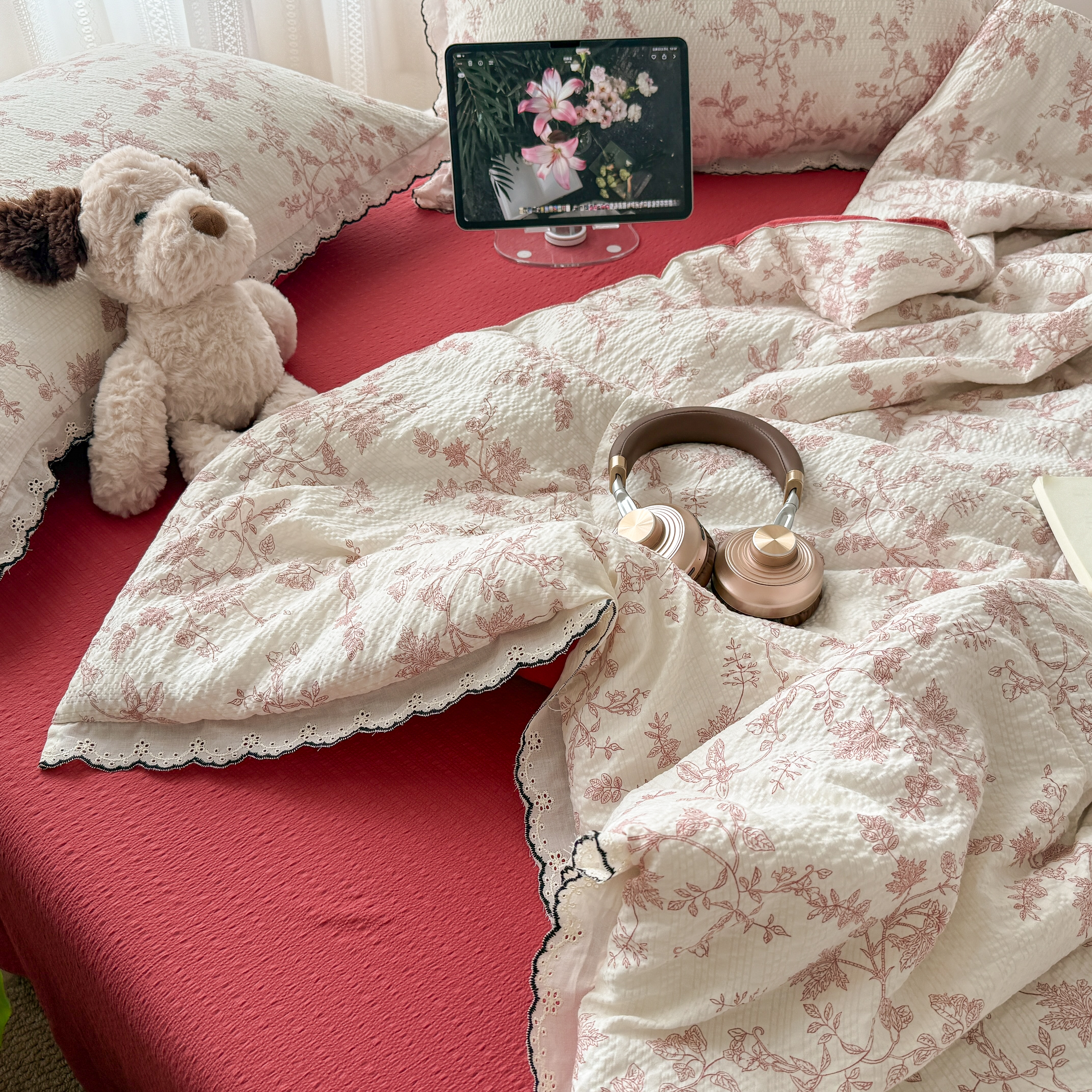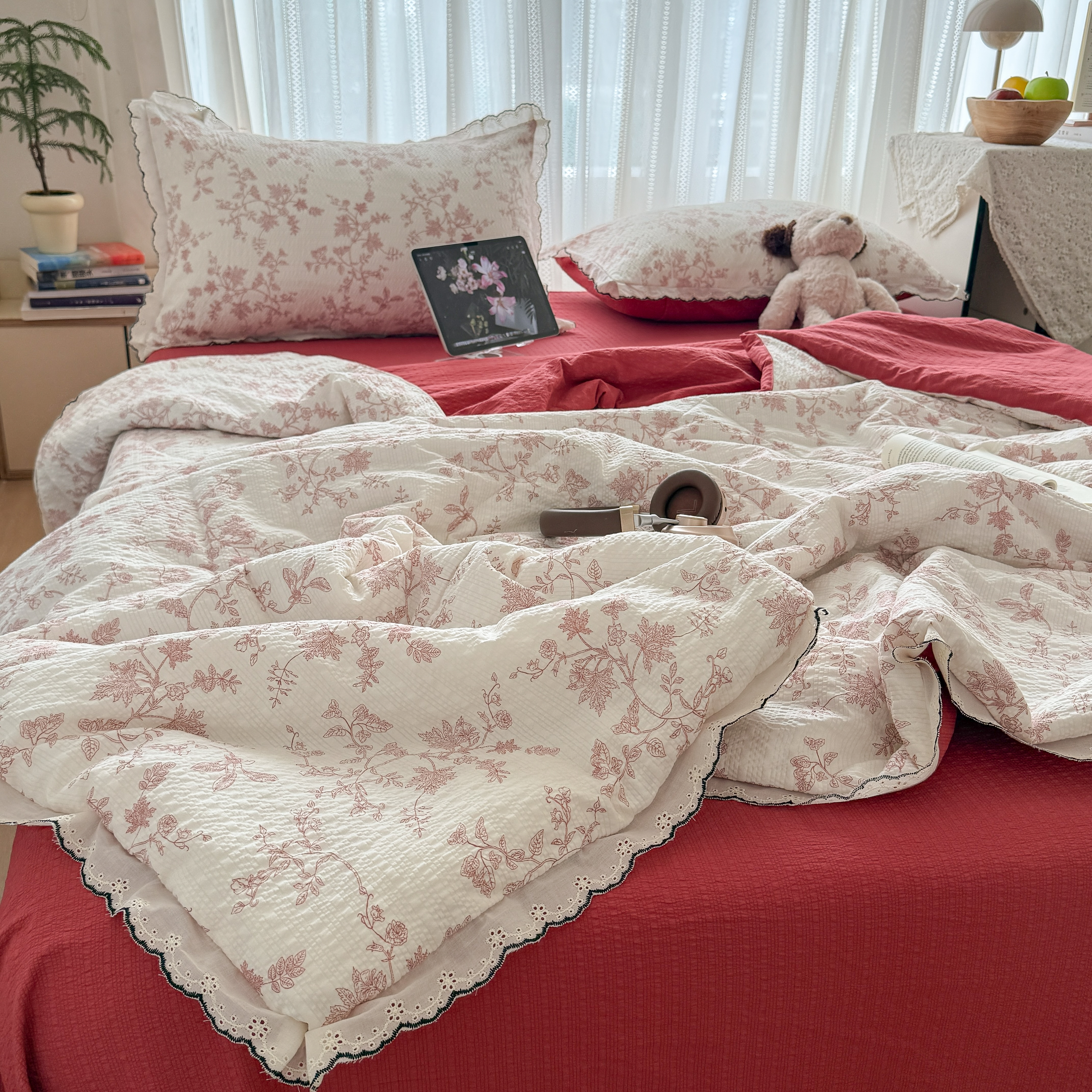 (总)欧尚 2026新款花边云感棉夏被床盖四件套,春辰绿,朵真,绯常,利莲,密朵,南朵,晴川木也