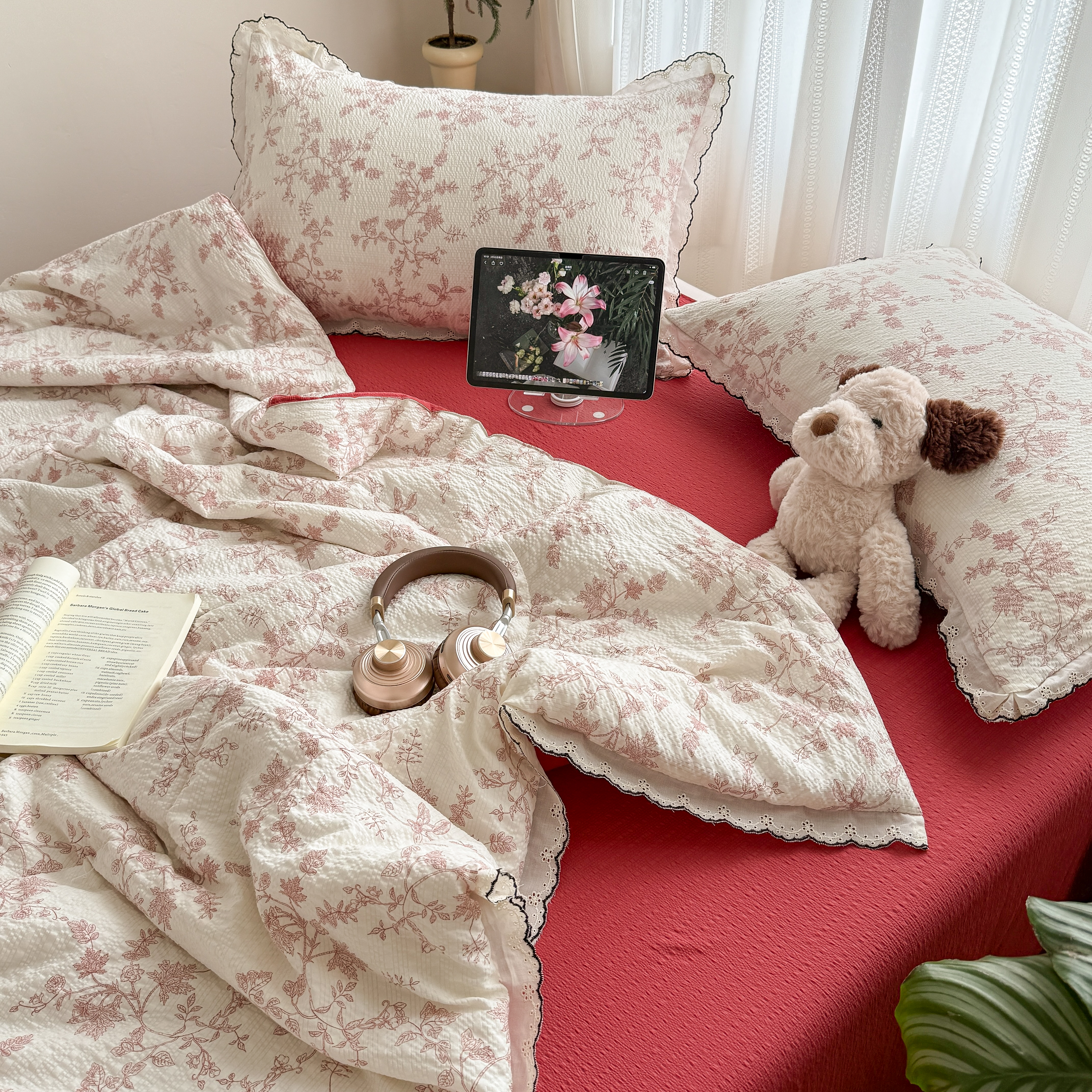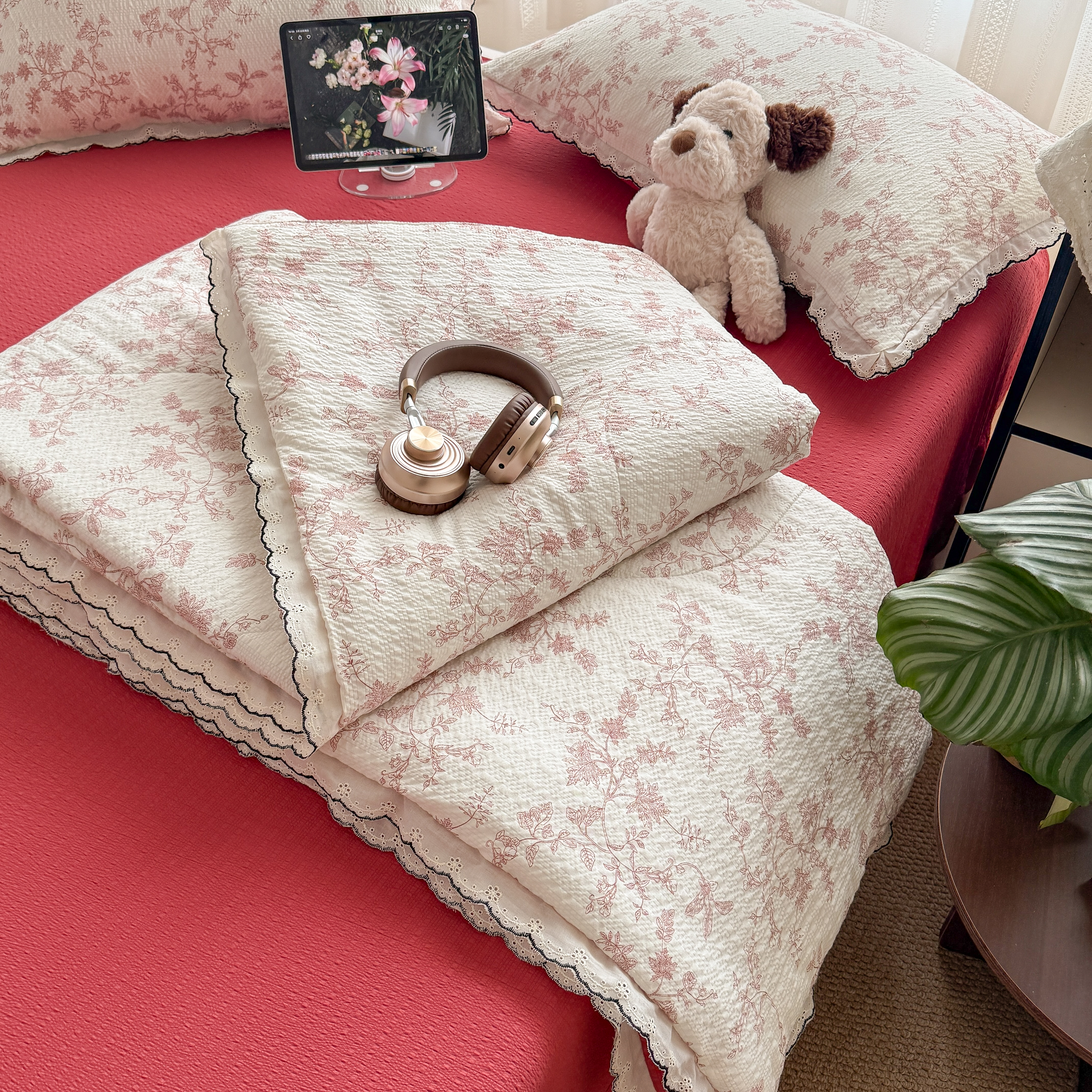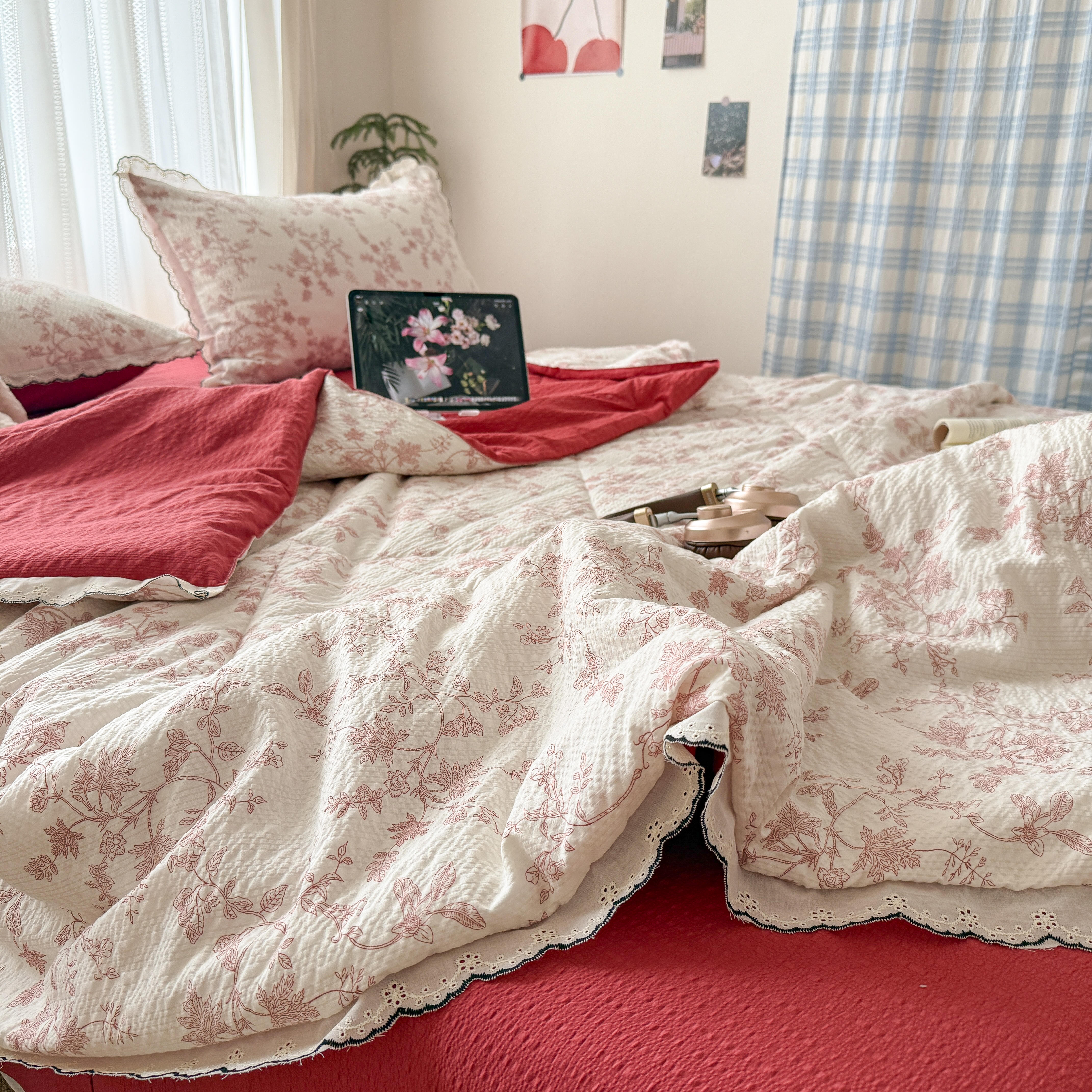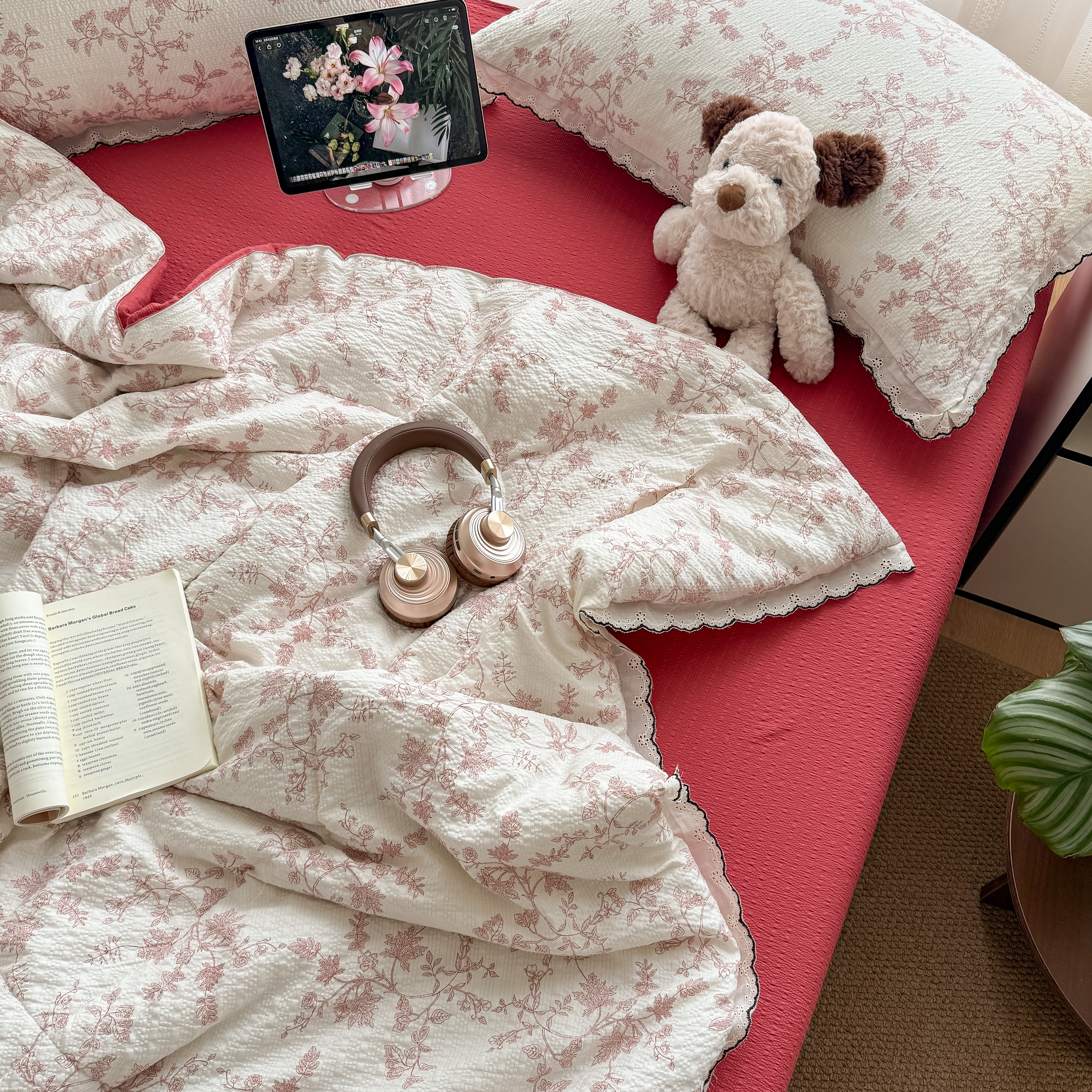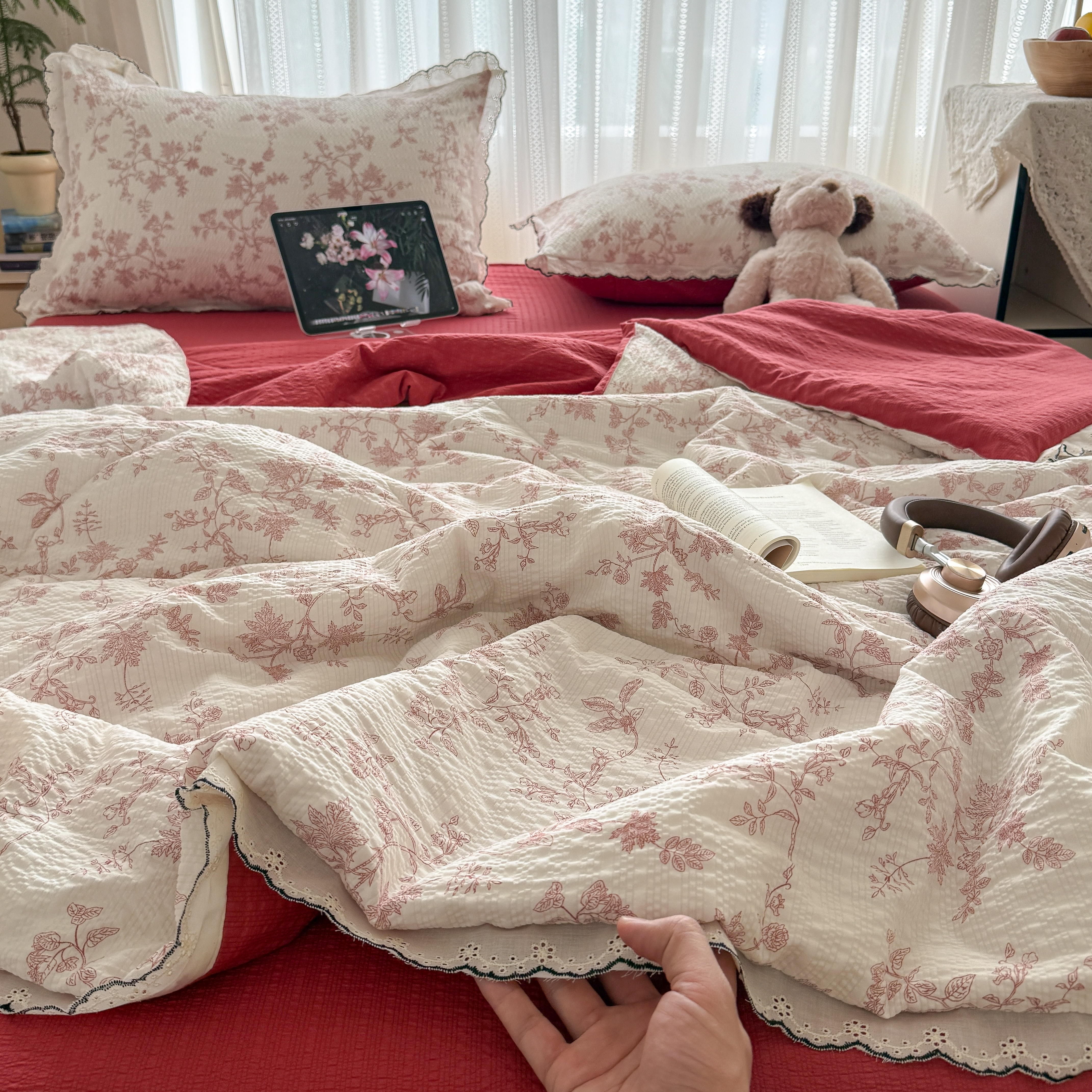 (总)欧尚 2026新款花边云感棉夏被床盖四件套,春辰绿,朵真,绯常,利莲,密朵,南朵,晴川木也