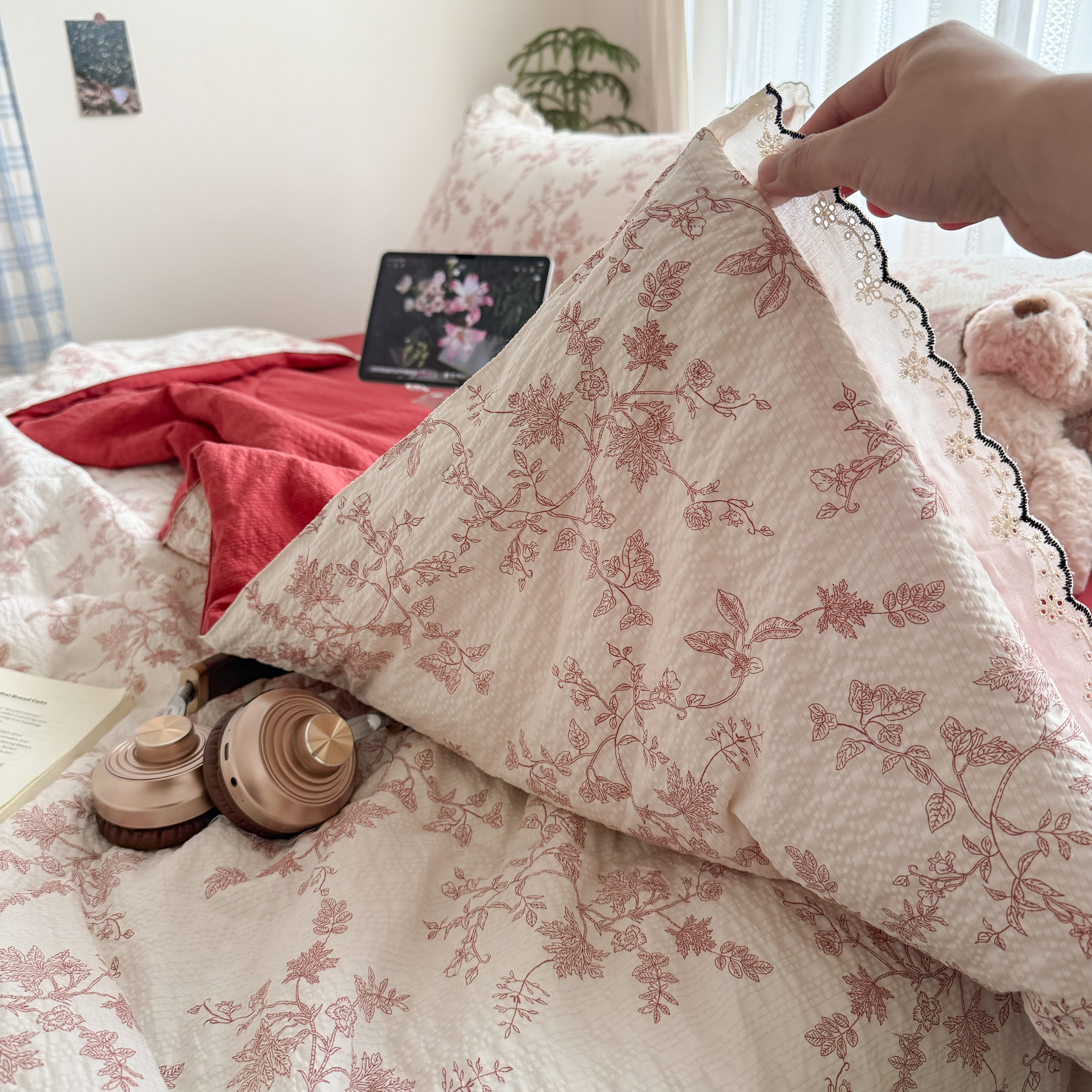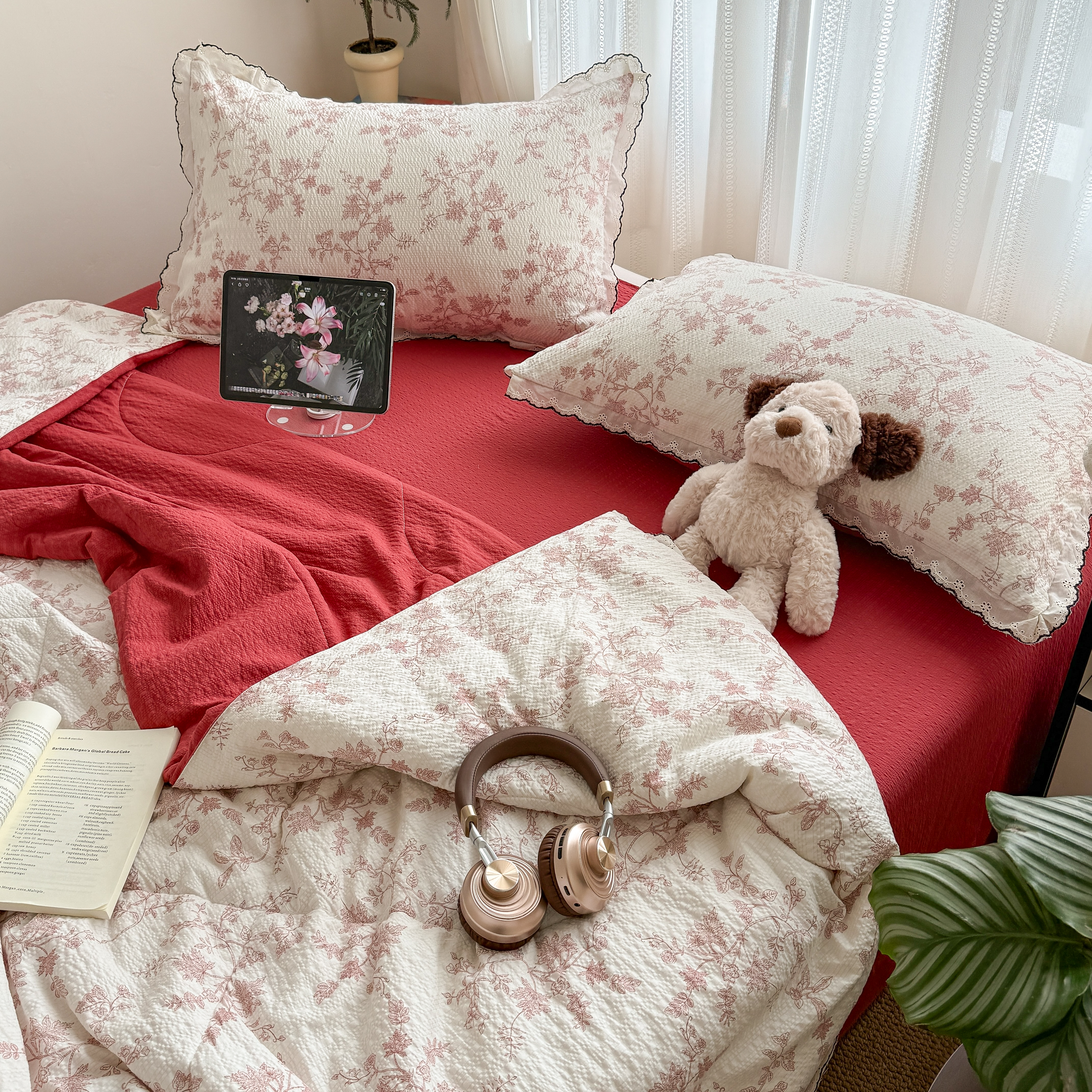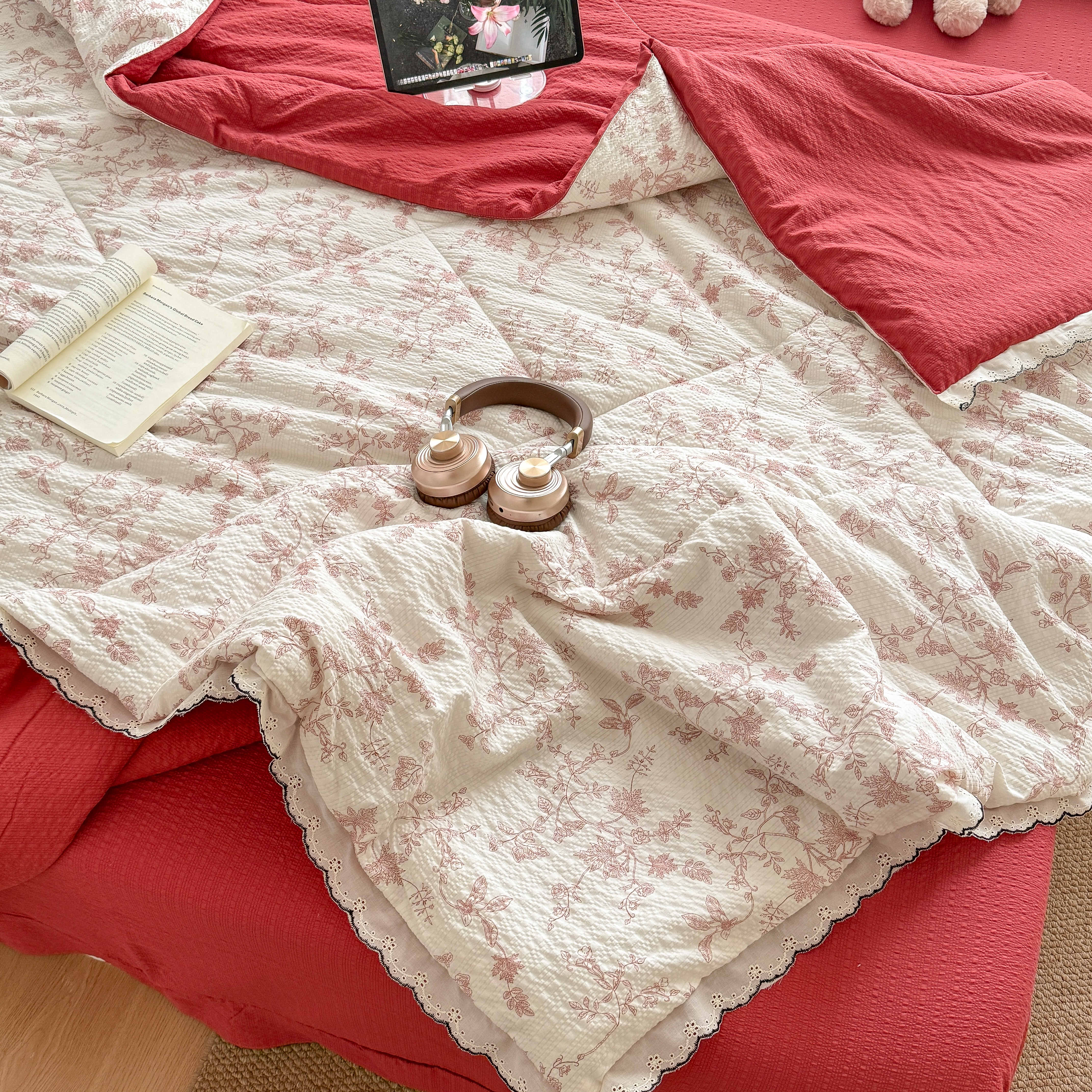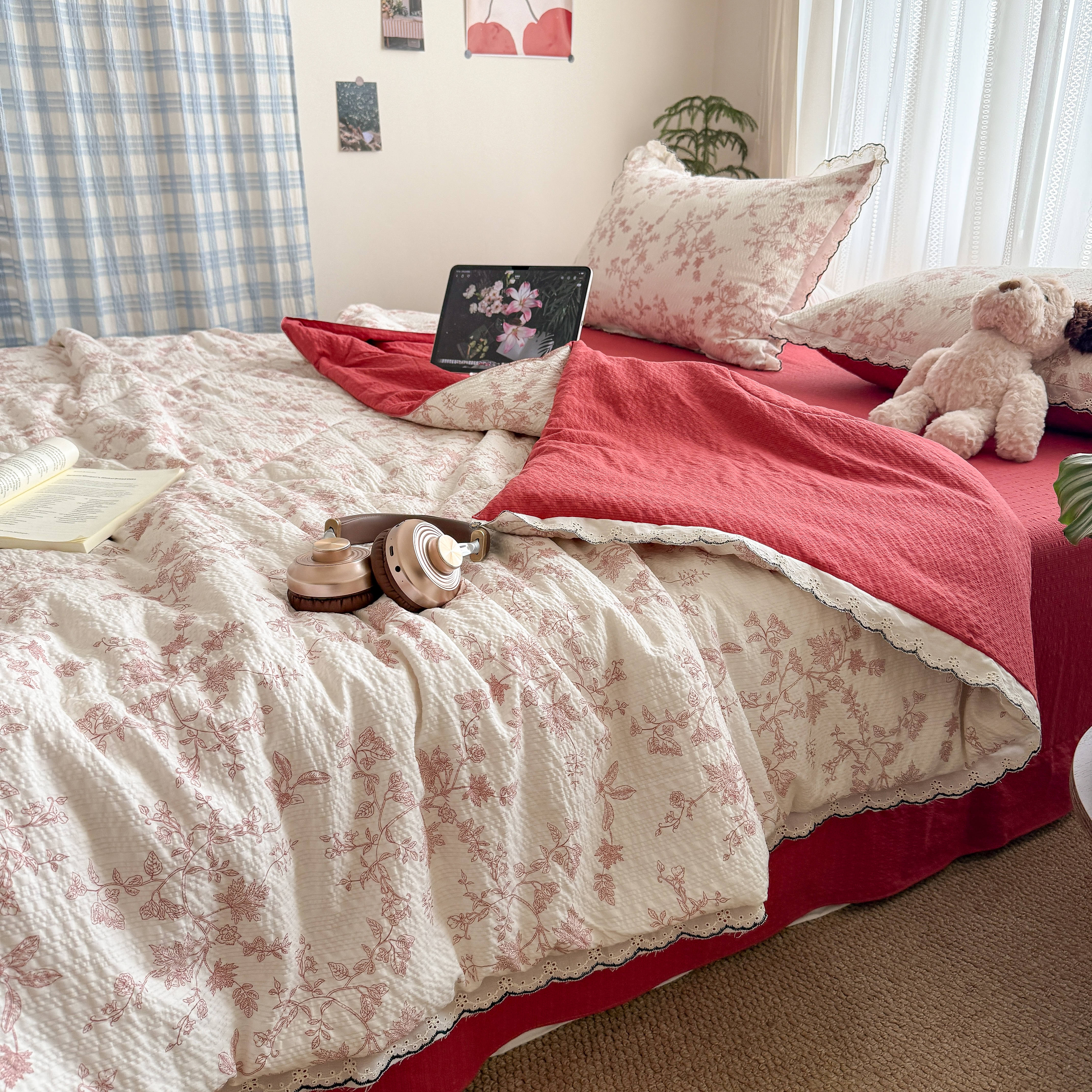 (总)欧尚 2026新款花边云感棉夏被床盖四件套,春辰绿,朵真,绯常,利莲,密朵,南朵,晴川木也
