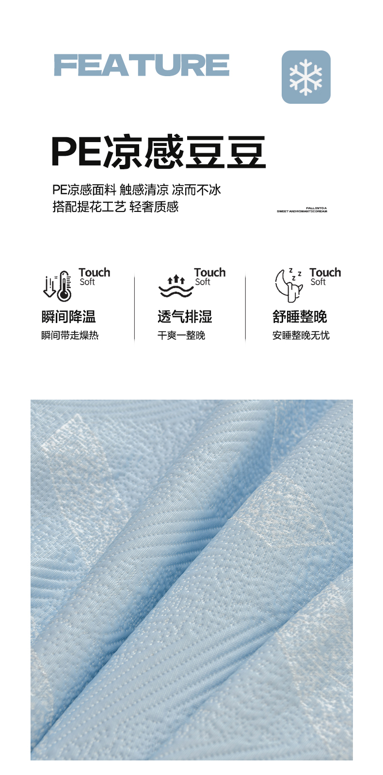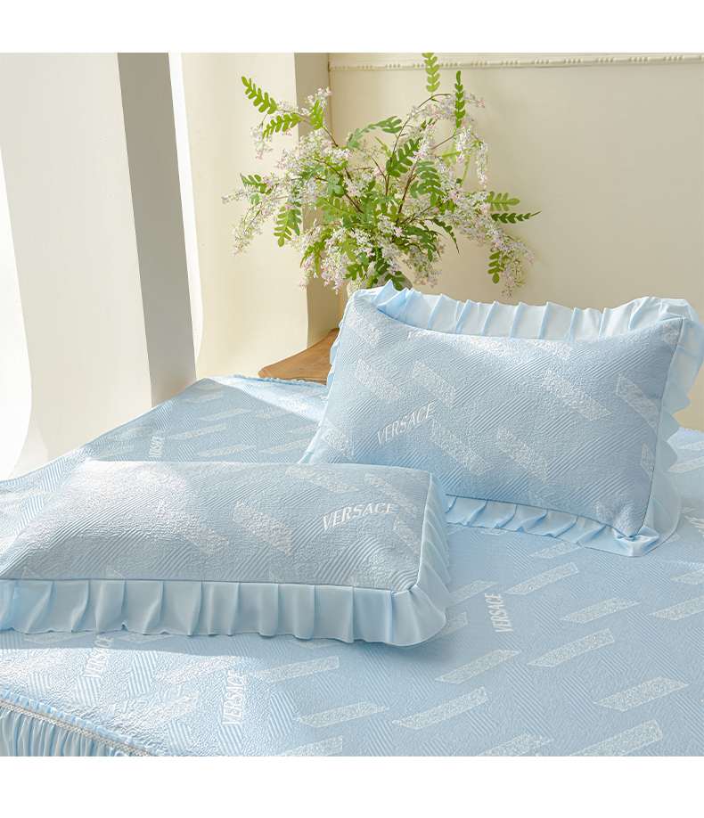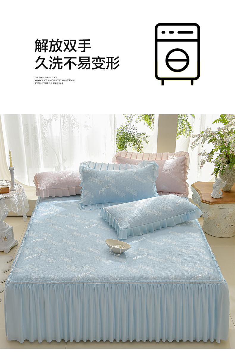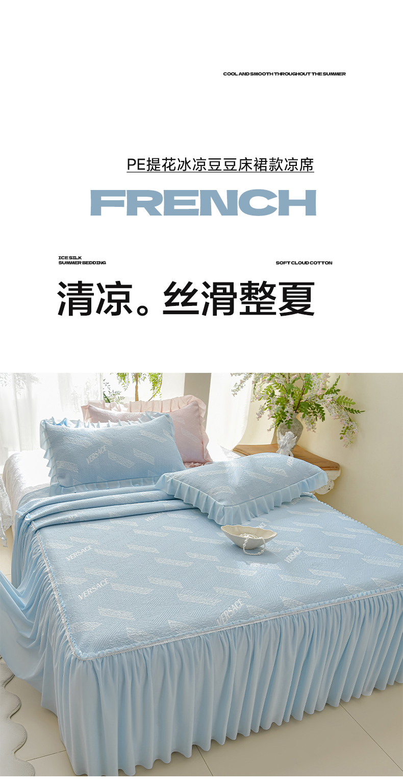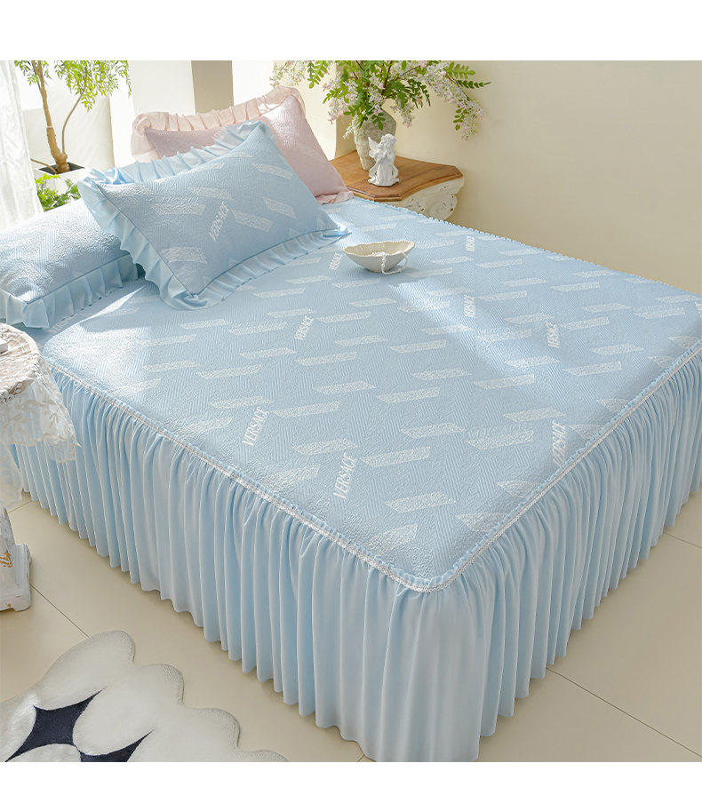 商品名称:绘萱家居 2026新款PE提花冰凉豆豆床裙款凉席席子凉席 帝塞纳-蓝
