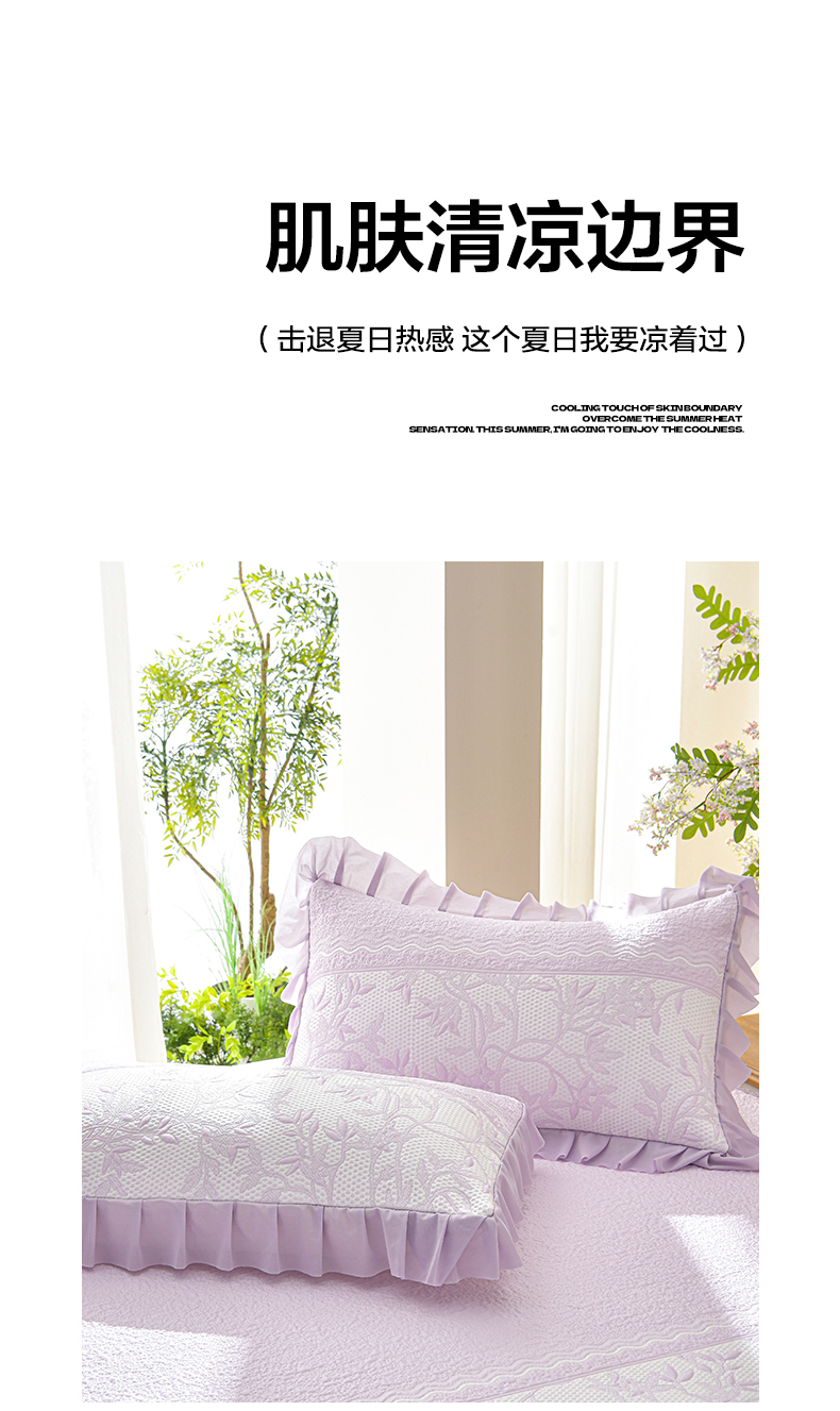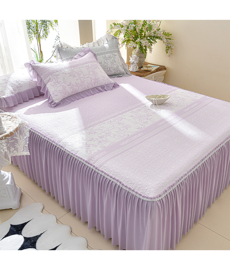 商品名称:绘萱家居 2026新款PE提花冰凉豆豆床裙款凉席席子凉席 清风叶蔓-紫