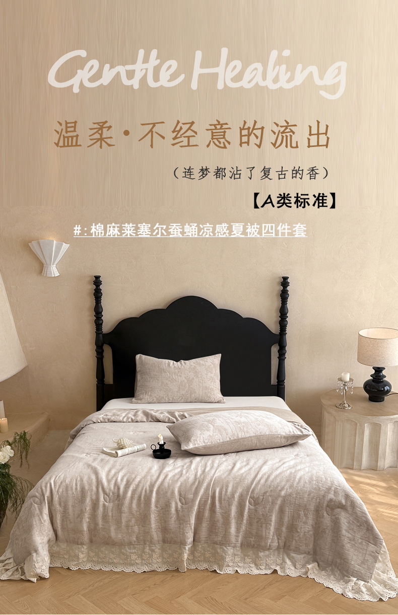 • 91家纺网 家纺一手货源 找家纺 VIP被业 2026新款棉麻莱塞尔蚕蛹凉感A类夏被四件套空调被 夏洛咖