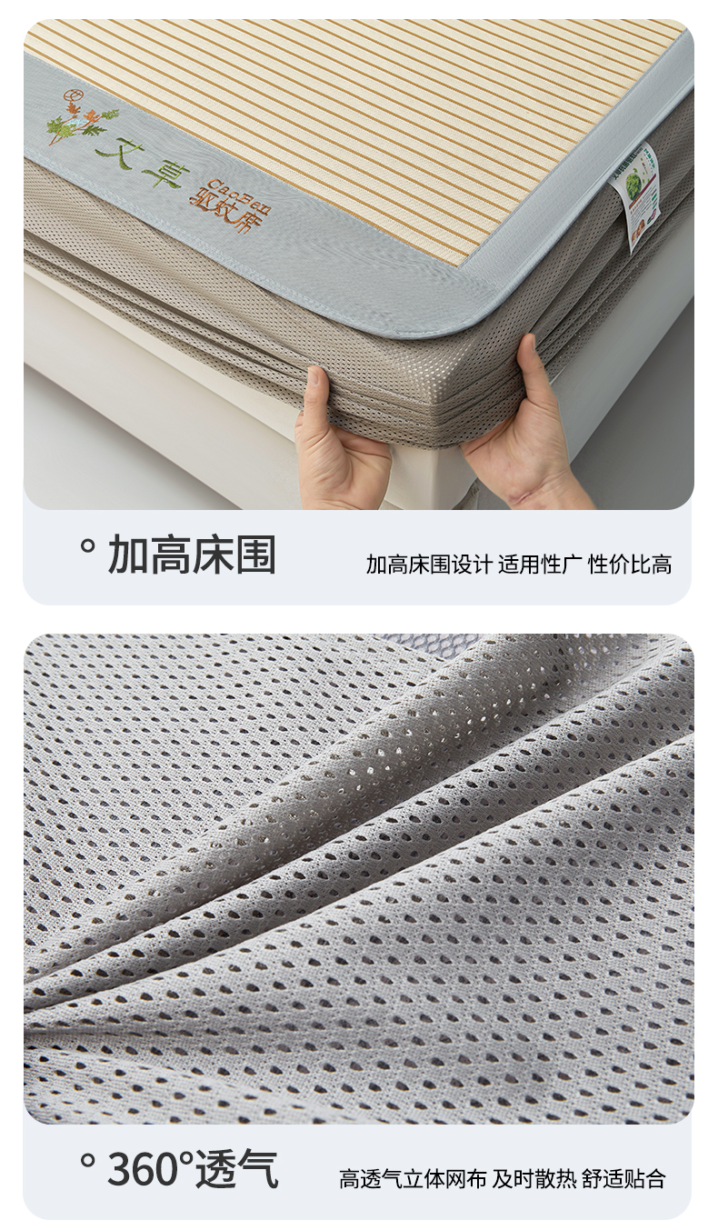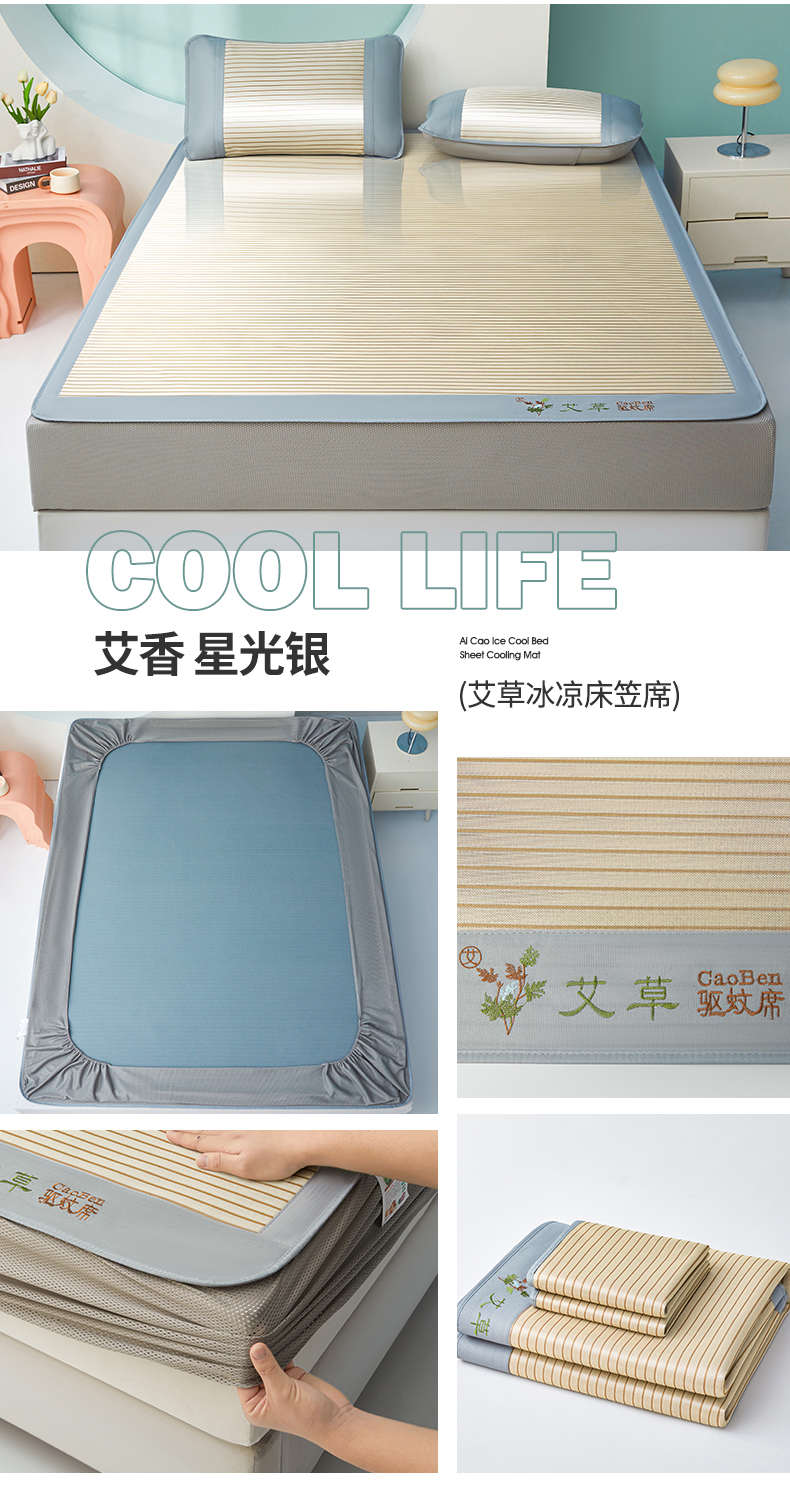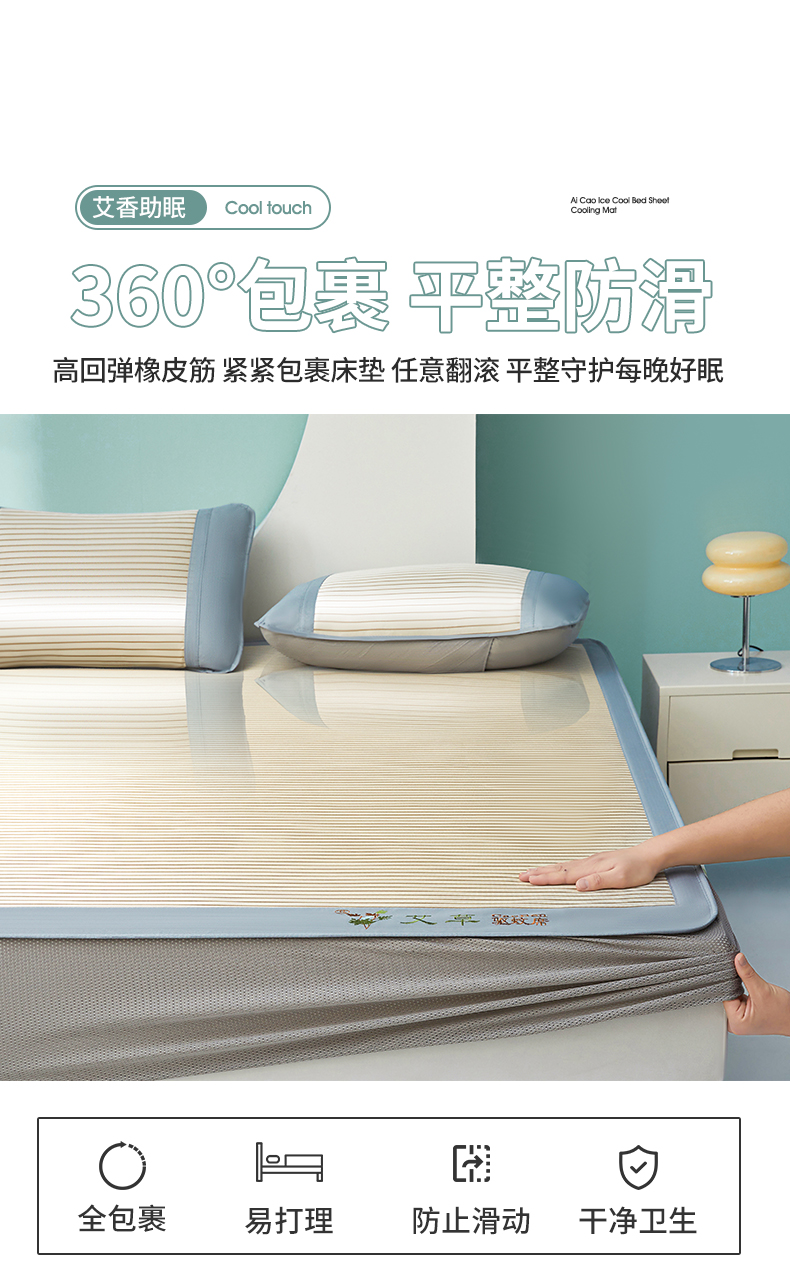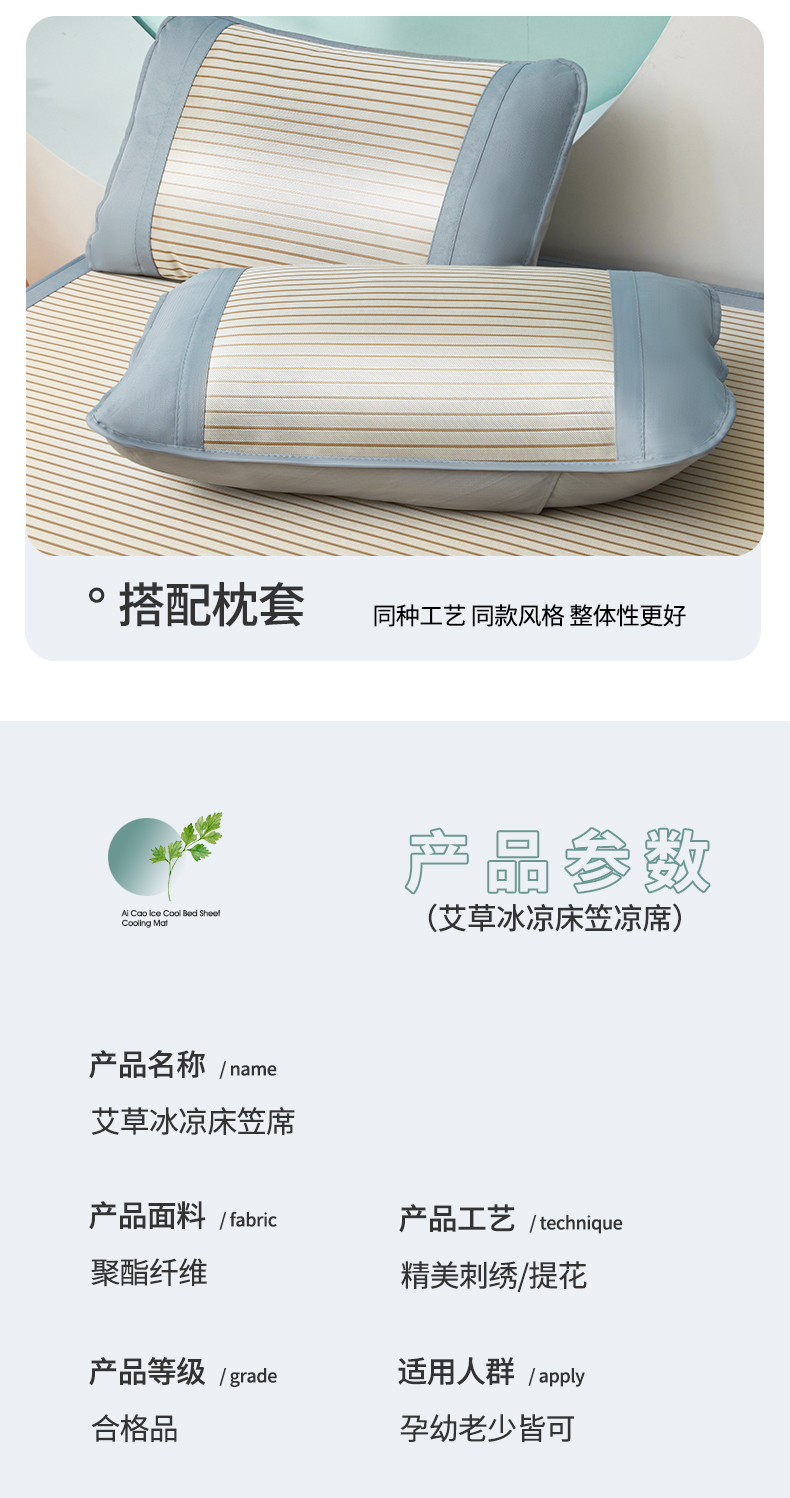 当前位置: 91家纺网 > 商品网购 > 床上用品 > 凉席 > 航途席业 2026新款刺绣可水洗碳光冰丝席宽包边无纺布冰丝席艾香系列 艾香条纹床席款星光银