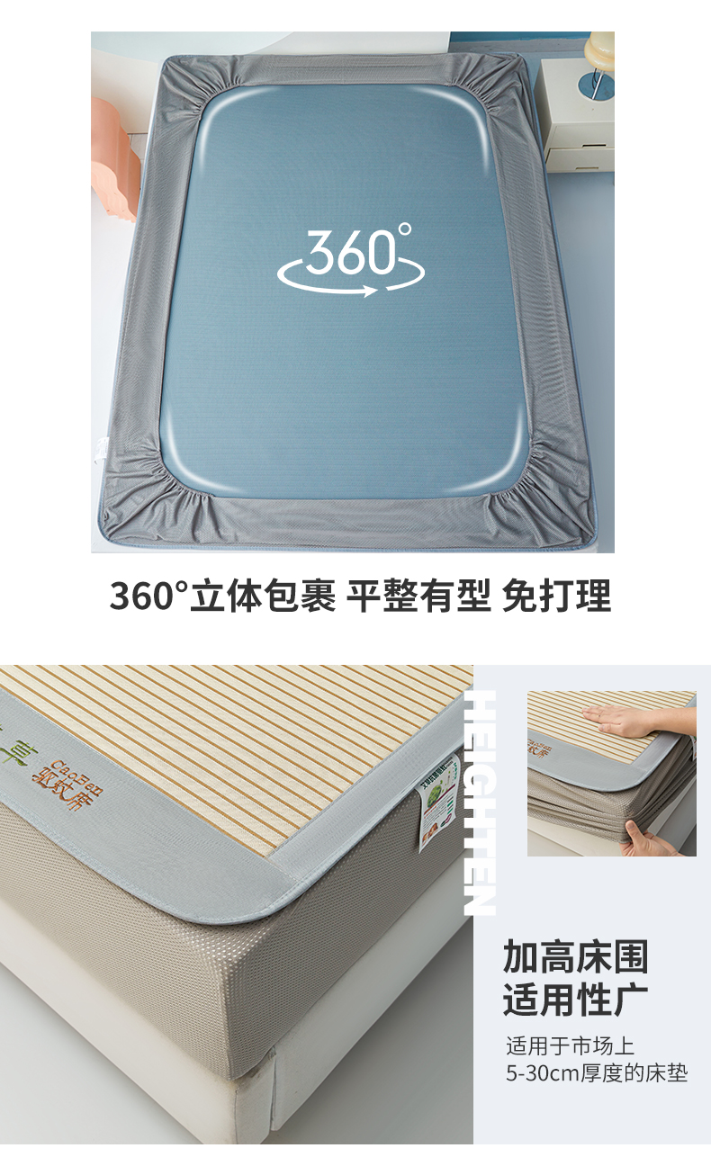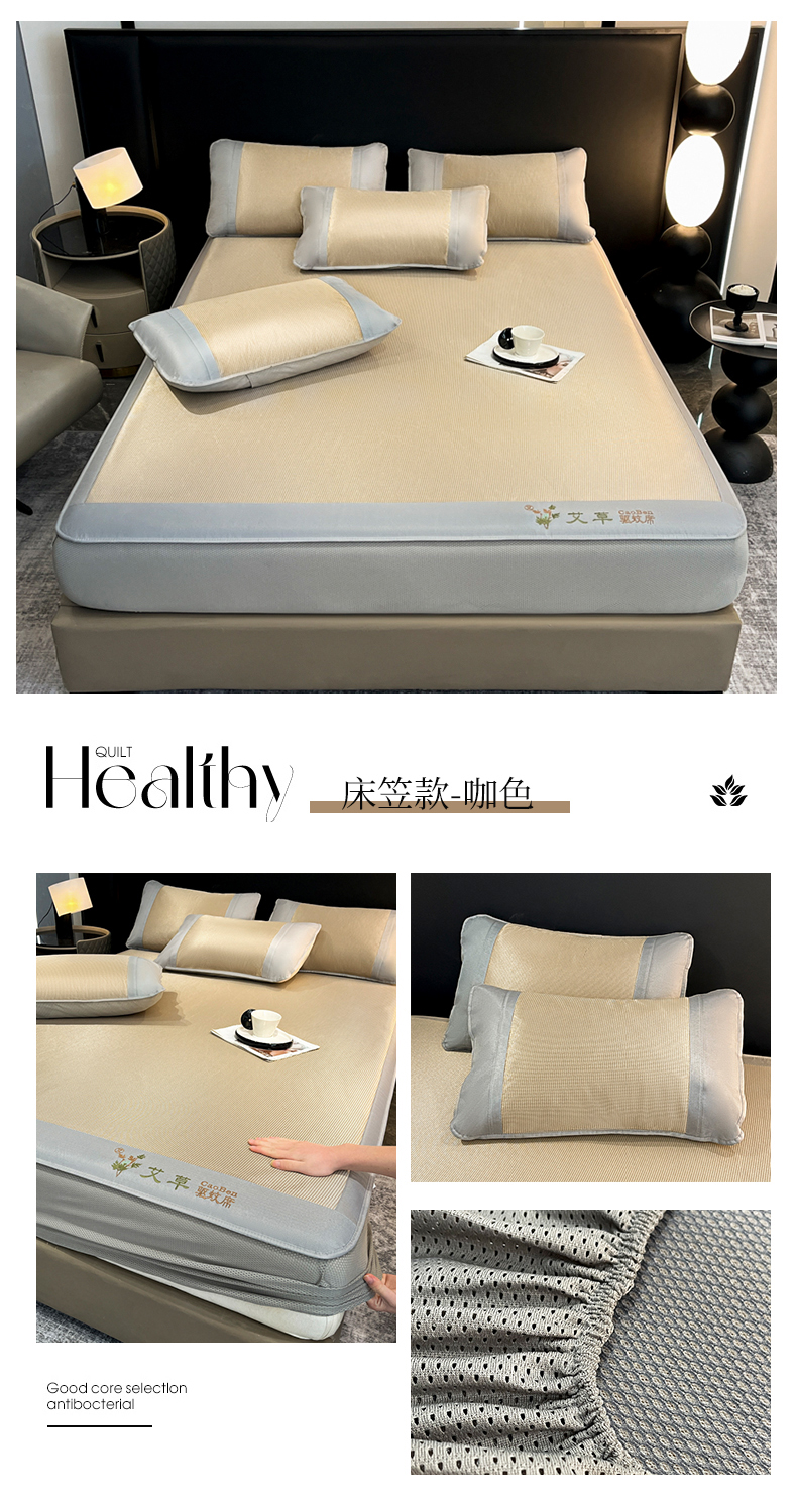 • 91家纺网 家纺一手货源 找家纺 航途席业 2026新款刺绣可水洗碳光冰丝席宽包边无纺布冰丝席艾香系列 艾香条纹床席款星光银