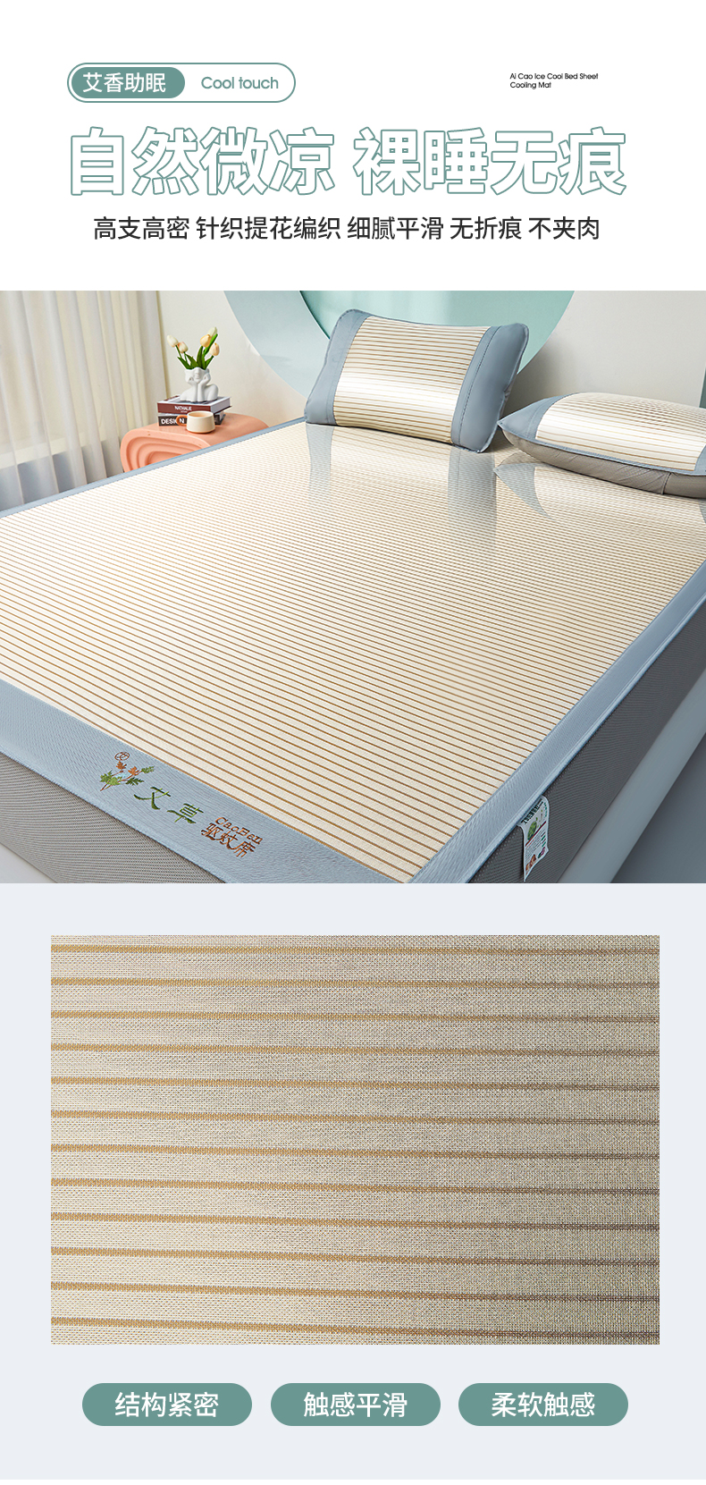 • 91家纺网 家纺一手货源 找家纺 航途席业 2026新款刺绣可水洗碳光冰丝席宽包边无纺布冰丝席艾香系列 艾香条纹床笠款星光银