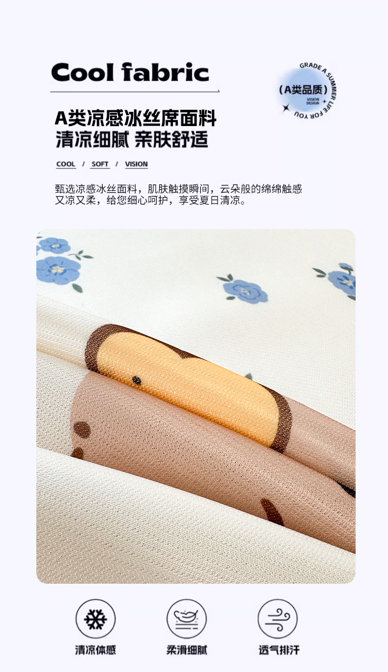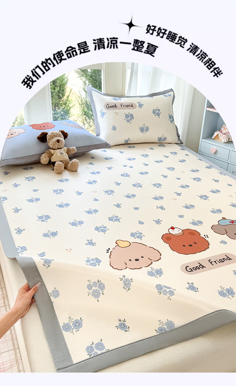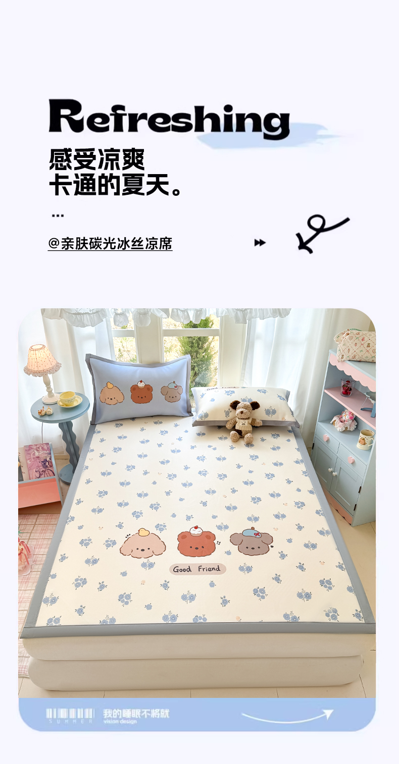商品名称:川悦生活 2026新款碳光冰丝大阪卡通凉席 奶汪甜园