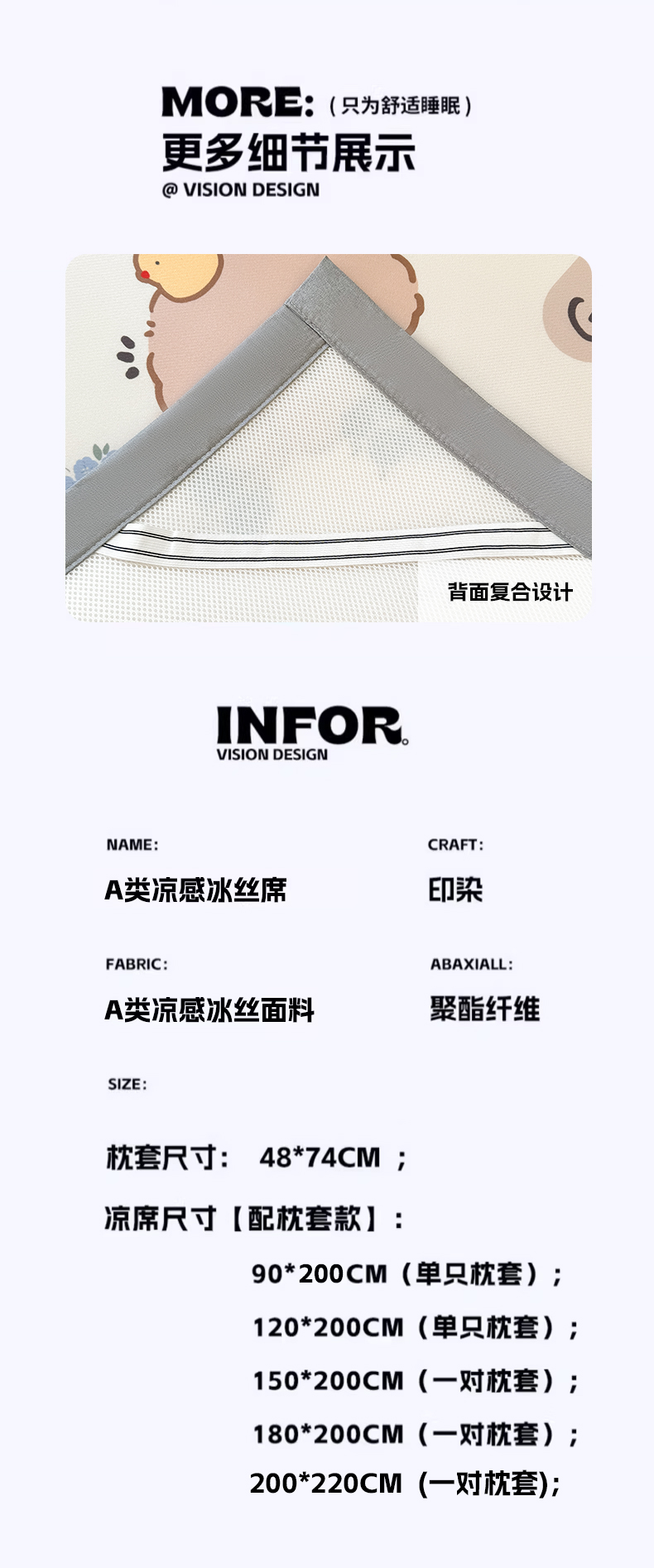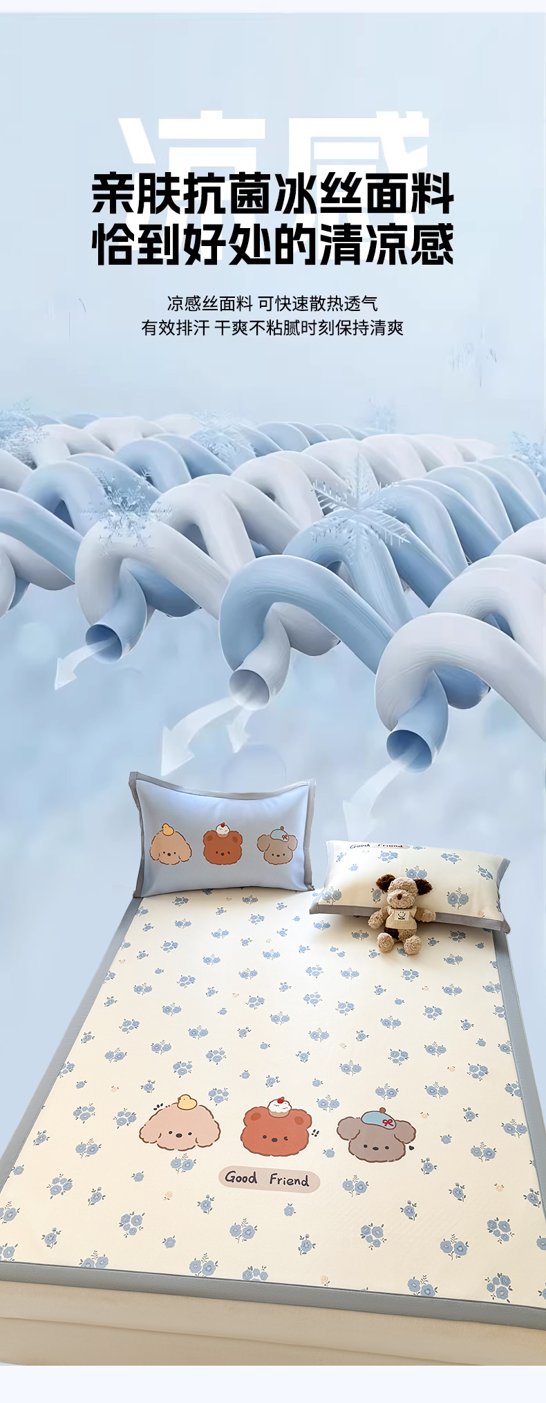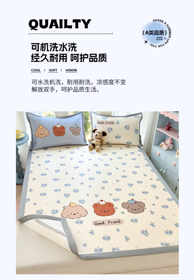 商品名称:川悦生活 2026新款碳光冰丝大阪卡通凉席 奶汪甜园