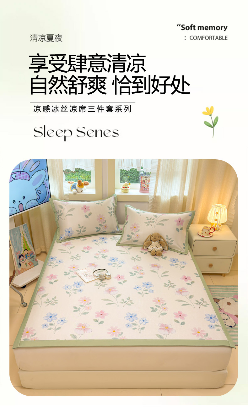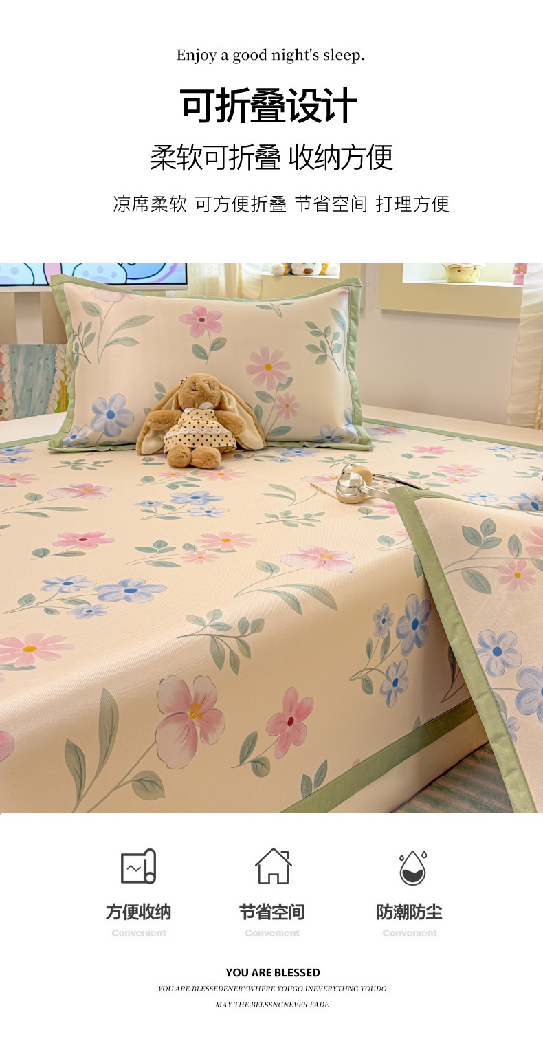 商品名称:慕尚家纺 2026新款凉感冰丝凉席席子 花开不语