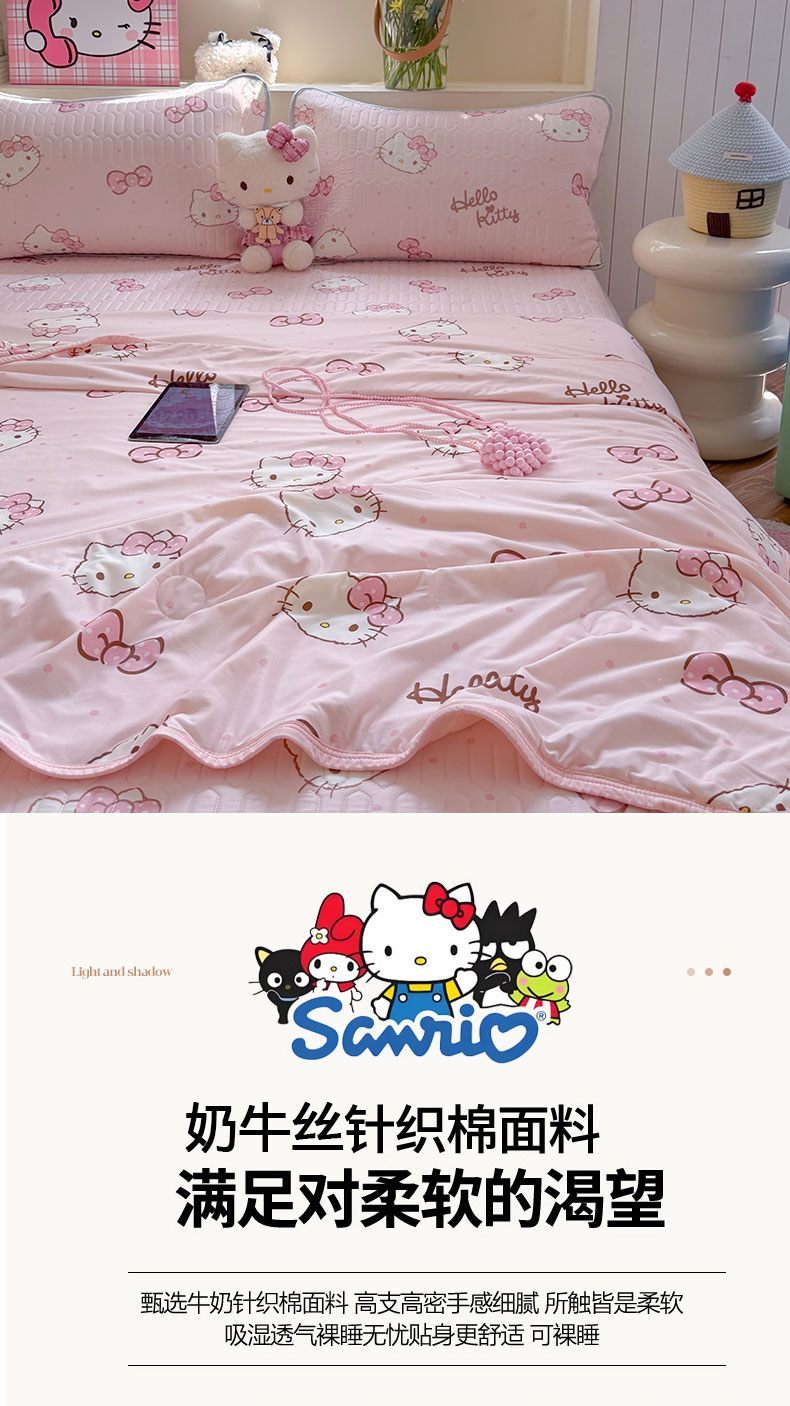 商品名称:(总)桃子家居 2026新款A类三丽鸥高品质可组合凉感丝乳胶席牛奶丝针织棉软糯夏被四件套