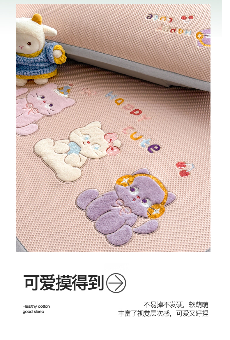 商品名称:布凡家居 2026新款高端A类PE高分子冰丝凉席卡通贴布凉席冰豆豆软凉席 小猫乐园-兰