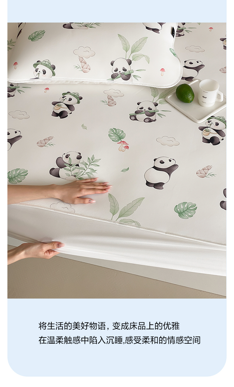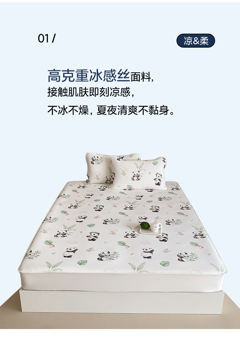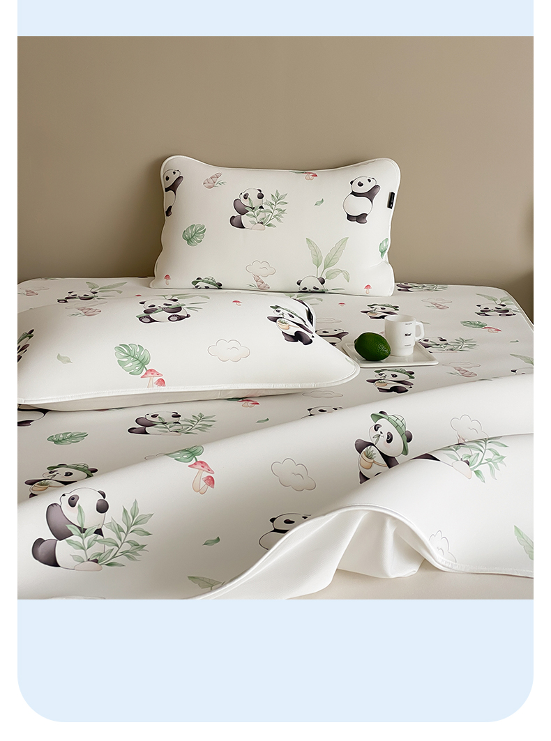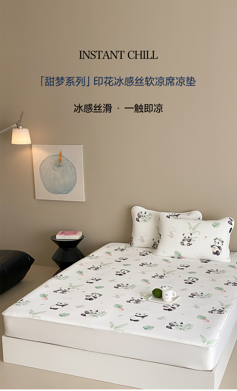 商品名称:三味舒屋 2026新款【甜梦派对】印花凉感丝软凉席凉垫(床笠款) 熊猫滚滚
