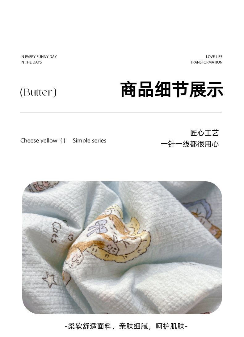欣宜家纺 2026新款A类全棉花边泡芙棉夏被夏凉被 奶油小猫