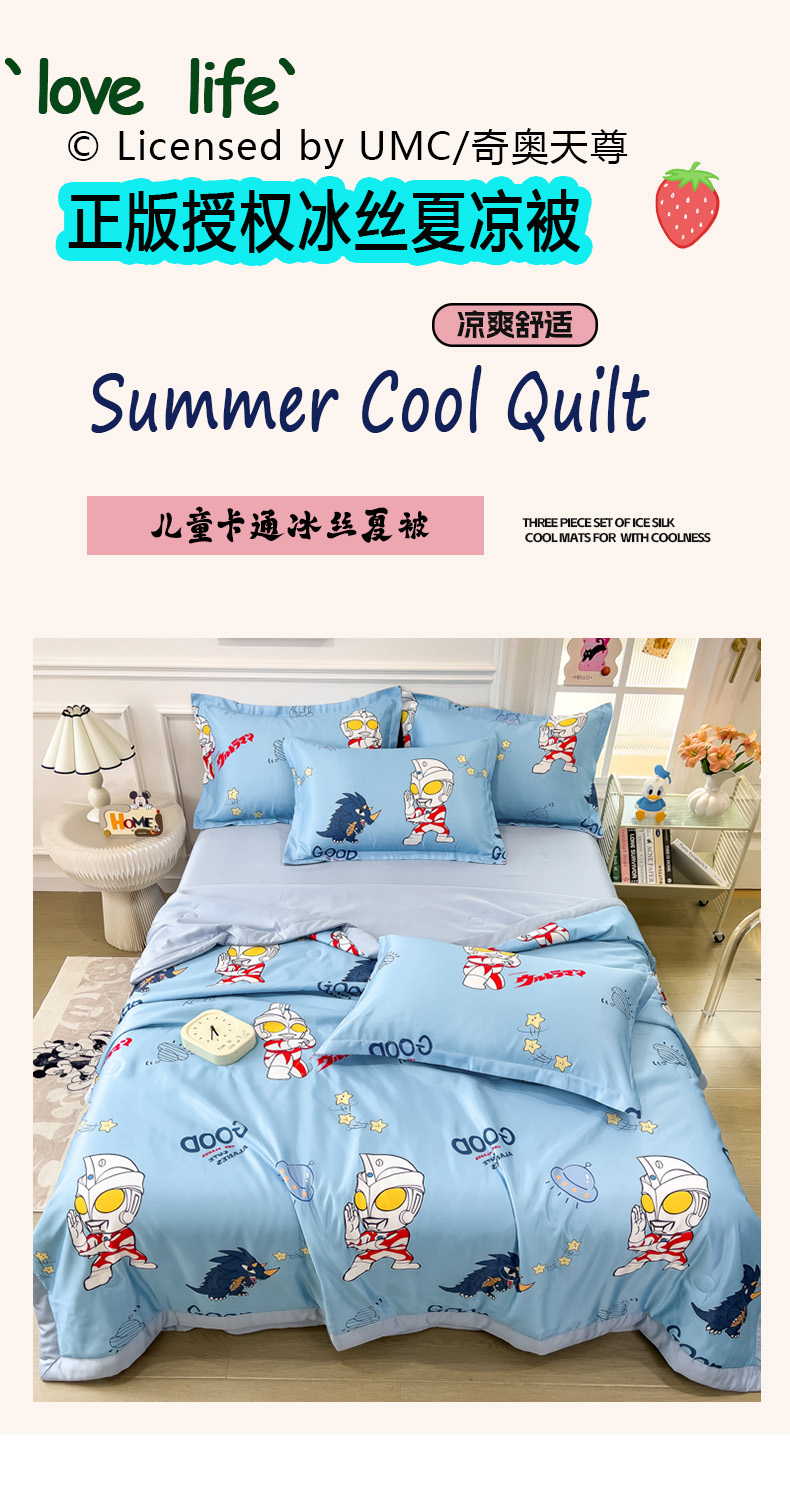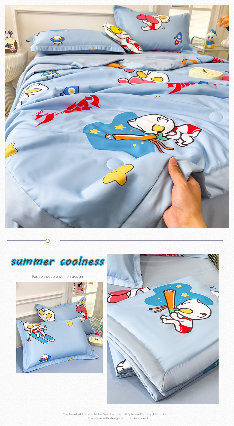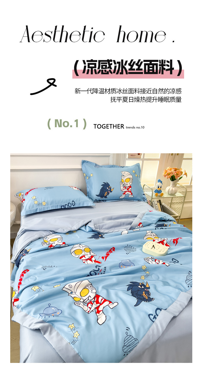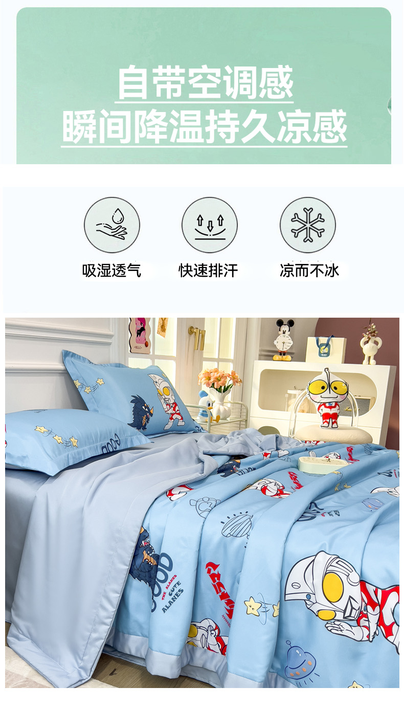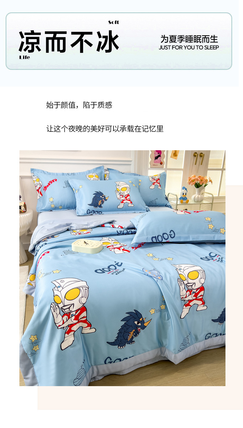 • 91家纺网 家纺一手货源 找家纺 云恋家纺 2026新款正版授权卡通冰丝夏凉被夏被空调被四件套 夏被-奥特曼打怪兽