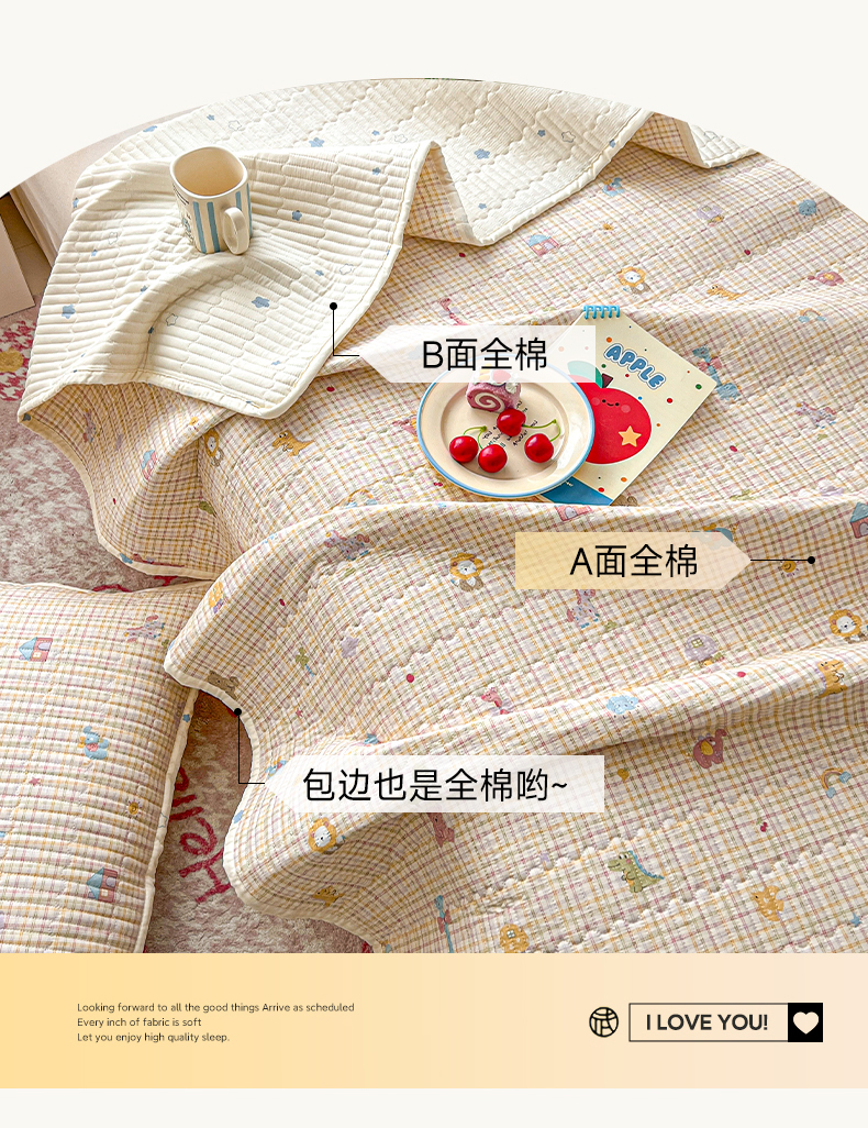 (总)舒居家纺 2026春夏新款双面全棉单床盖 床盖单件,半暖时光,比利小熊,马到成功,兔兔宝贝,花季少女,奔跑小狗,洛琳-粉,花开无声-咖,俏皮狗,兔兔乐园,小汽车,樱桃格子,组合图仅供展示不可下单