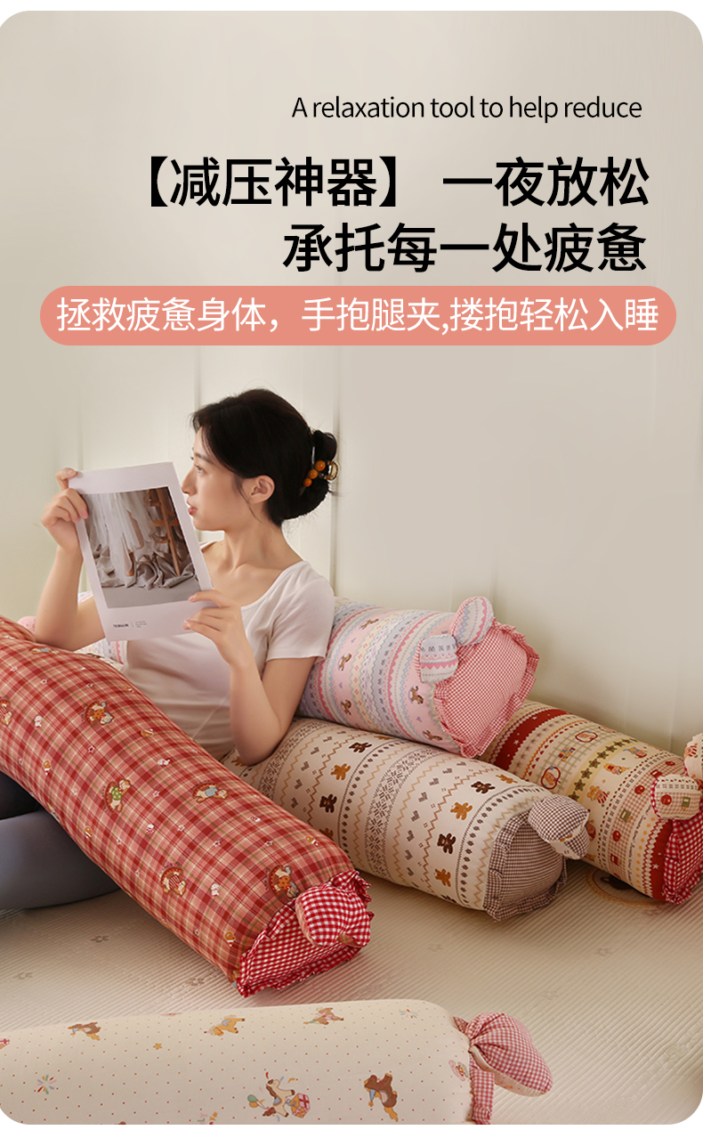 商品名称:蔻眠 全棉印花双层纱长抱枕夹腿抱枕长枕芯儿童学生成人枕头 红苹果星星