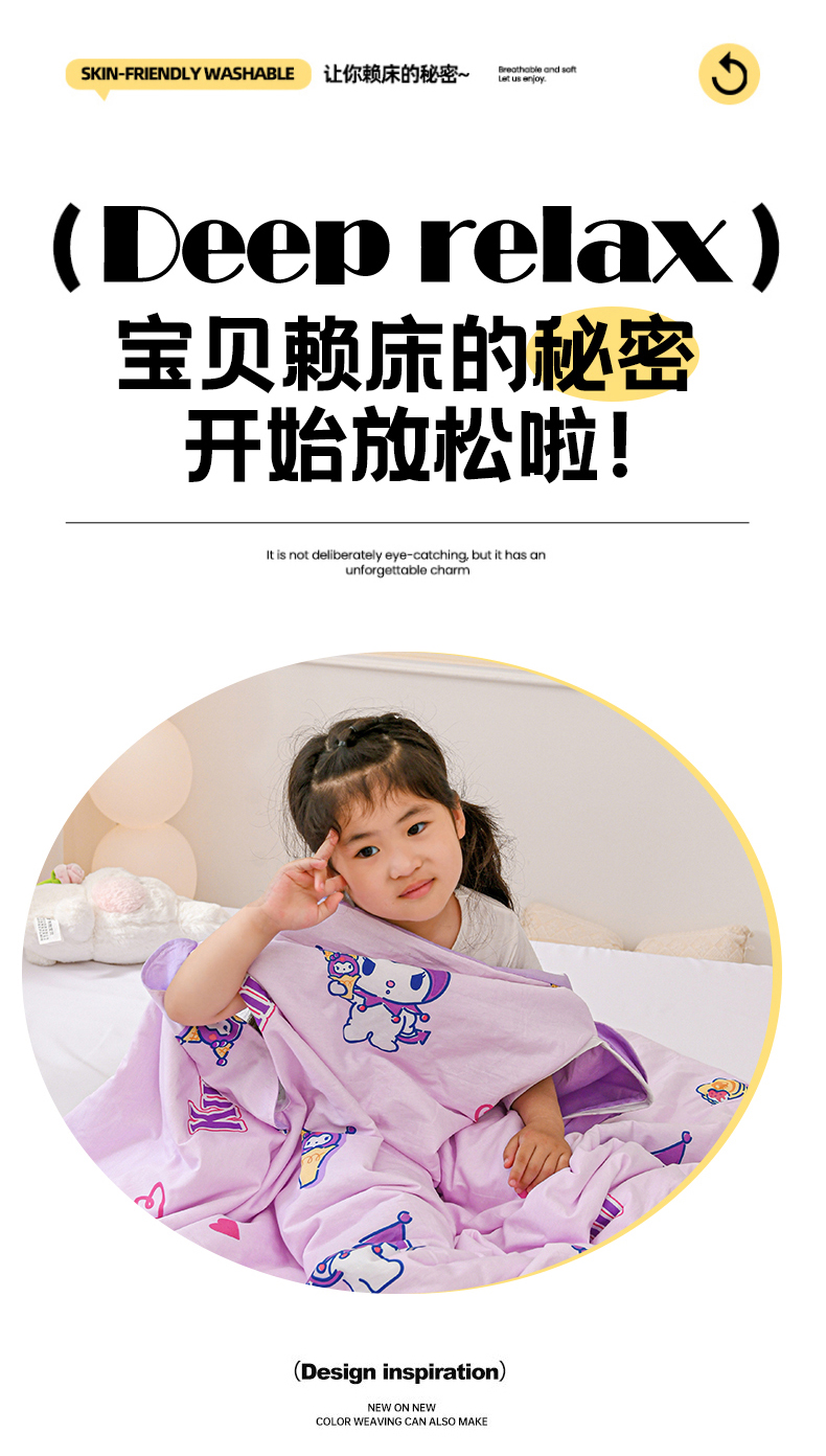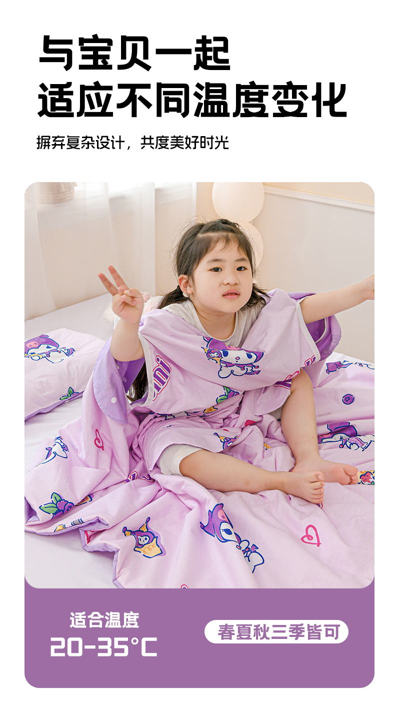 商品名称:名兮家居 2026新款经典奥特曼三丽鸥A类全棉纯棉儿童睡袋护肚防踢被 防踢被-甜筒库洛米