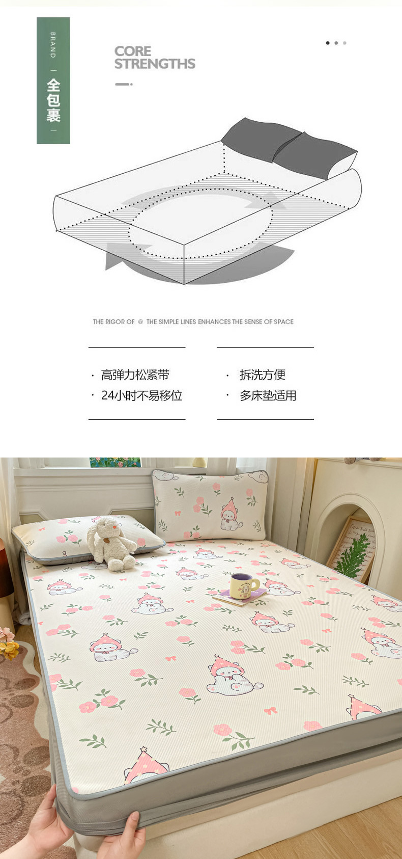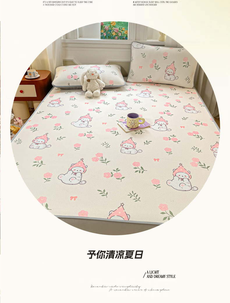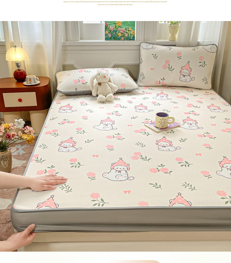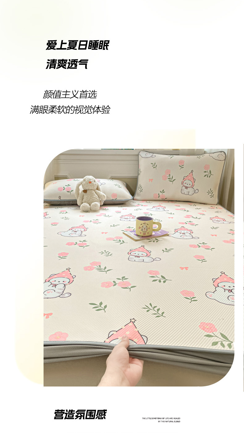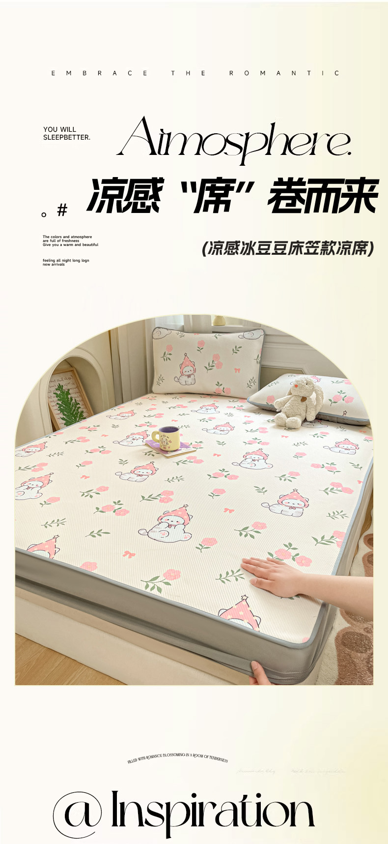 (总)女子家纺 2026新款大斜纹复合冰丝凉席-床笠款,爱心气泡粉-床笠款,萌熊印象-床笠款,奶油草莓-床笠款,拈花湾蓝-床笠款,七彩龙-床笠款,奇妙幻想-床笠款,水木年华-床笠款,午后茶花-床笠款,悠悠小元-床笠款,尤克克里粉-床笠款