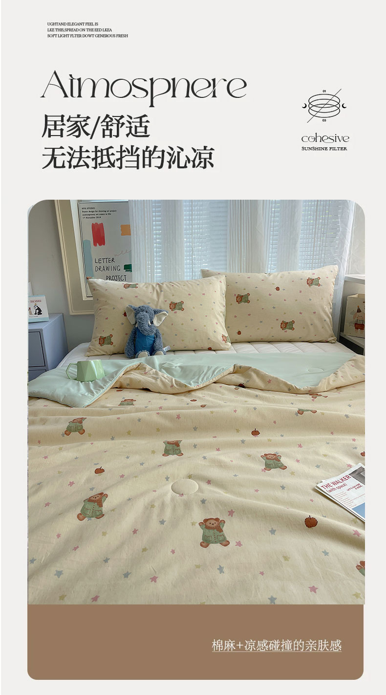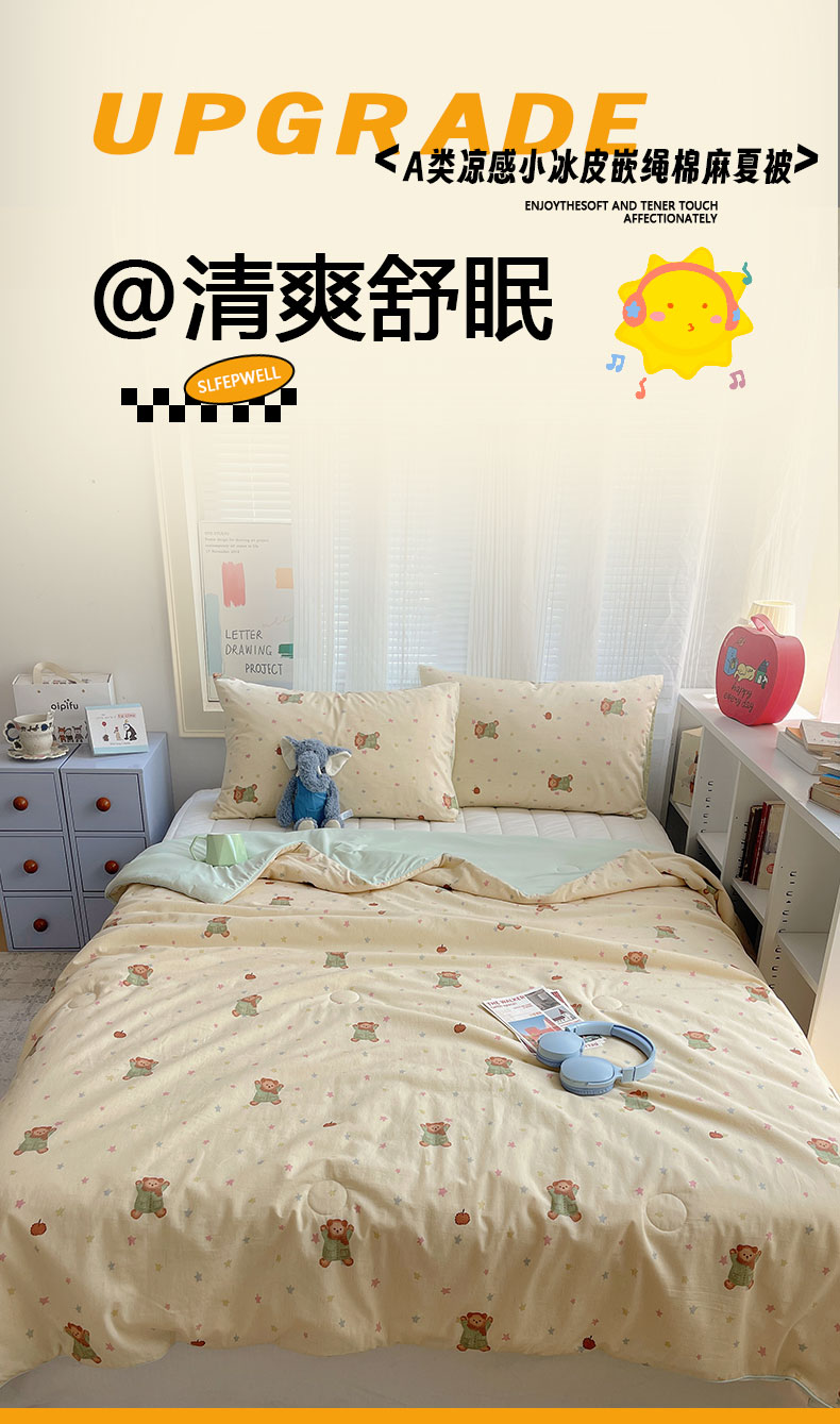 被子 > 夏被 > 桃子家居 2026新款A类原生态纯棉棉麻凉感小冰皮嵌绳工艺棉麻夏被夏凉被空调被 棉麻冰皮-奶黄小熊