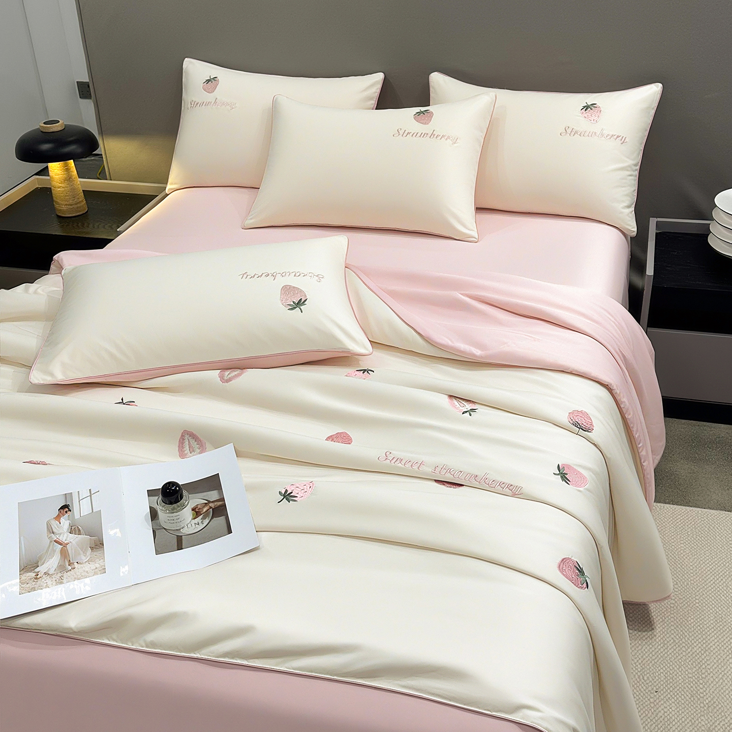 (总)梦舒羽 2026新款A类水洗冰丝满版夏凉被,草莓-奶白粉,樱桃-奶白粉,云朵-奶白蓝,郁金香-奶白绿,海豚-奶白蓝,云朵-粉玉蓝