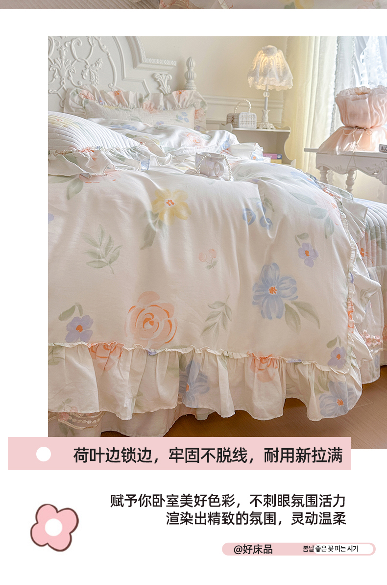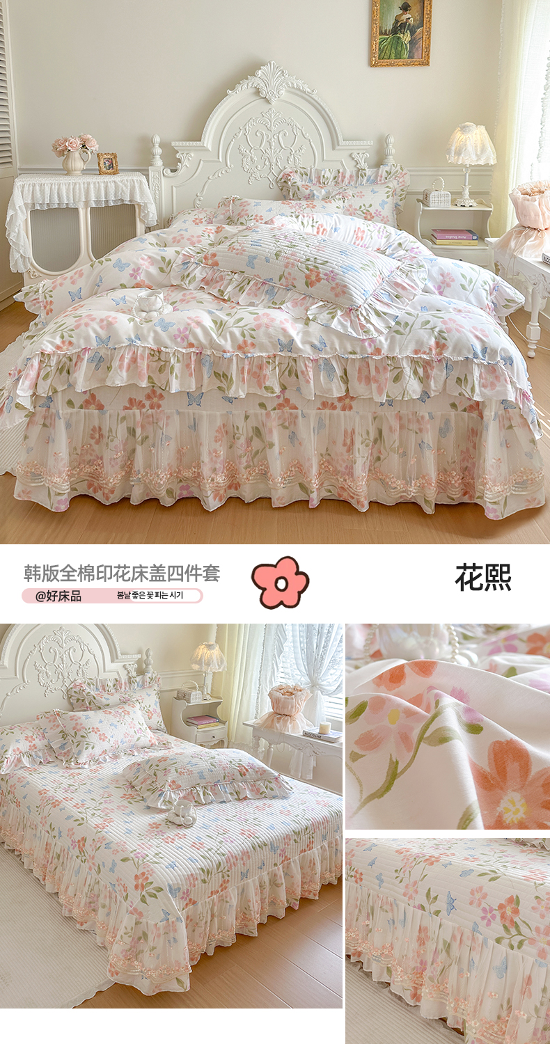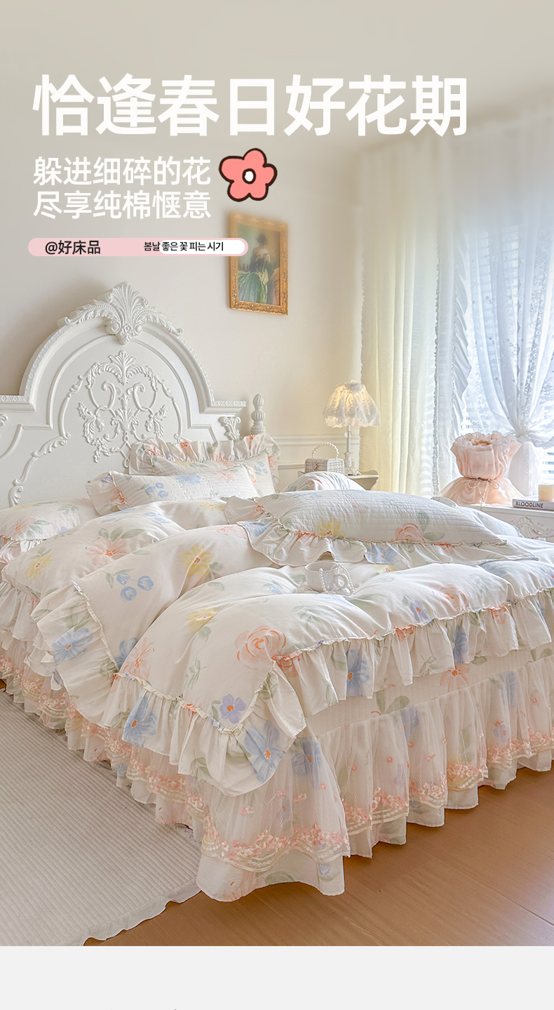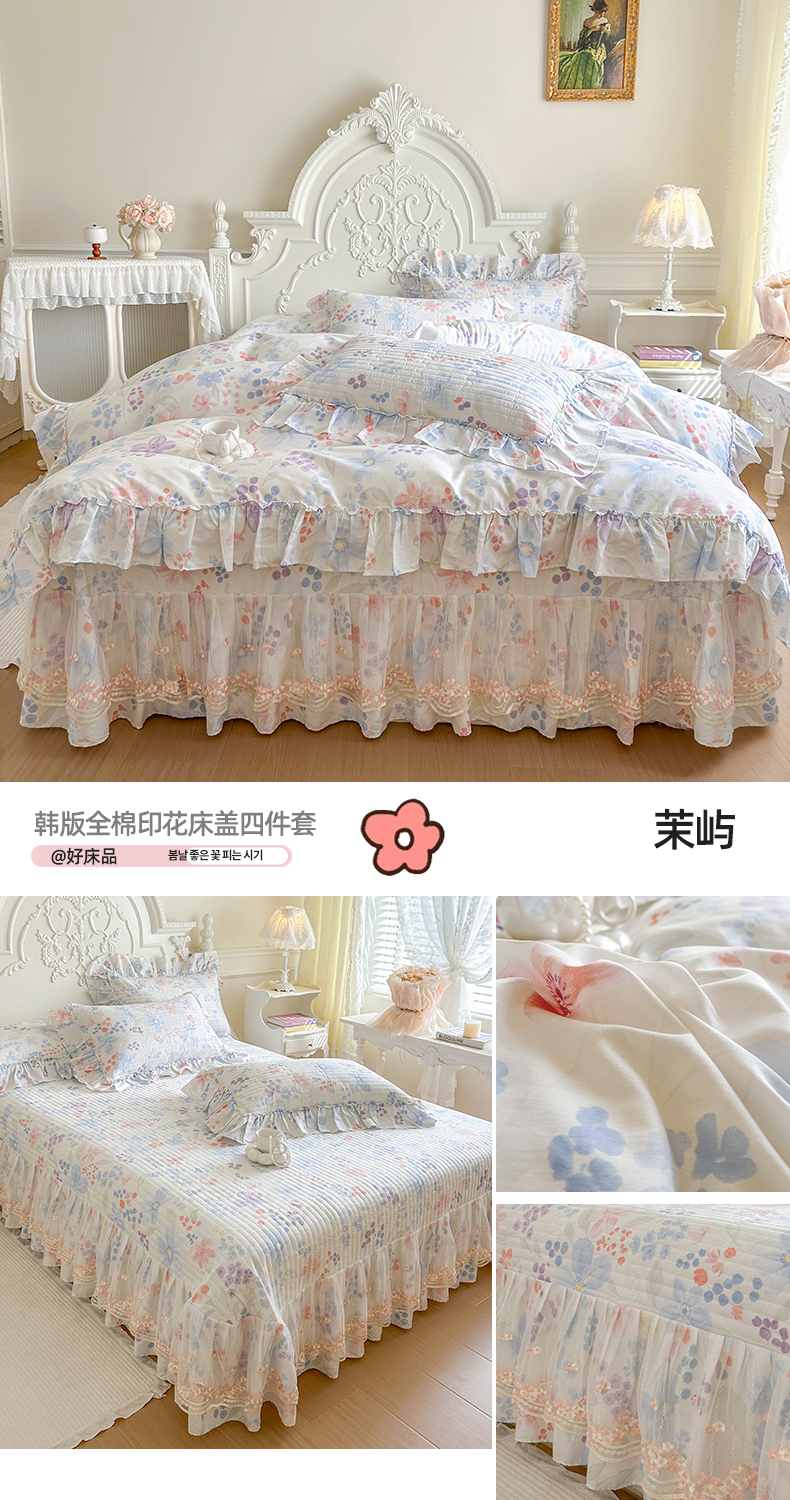 (总)网红馆(ck家纺) 2026春夏新款小清新全棉印花床裙四件套,花蔓蓝,蕾丝花海,翩翩花语,清风花影,甜心花朵,幸福花海