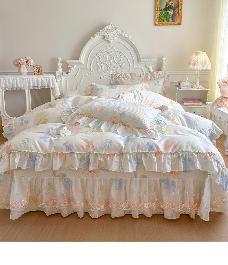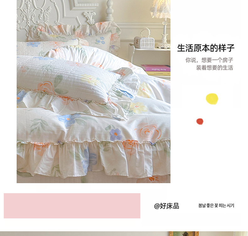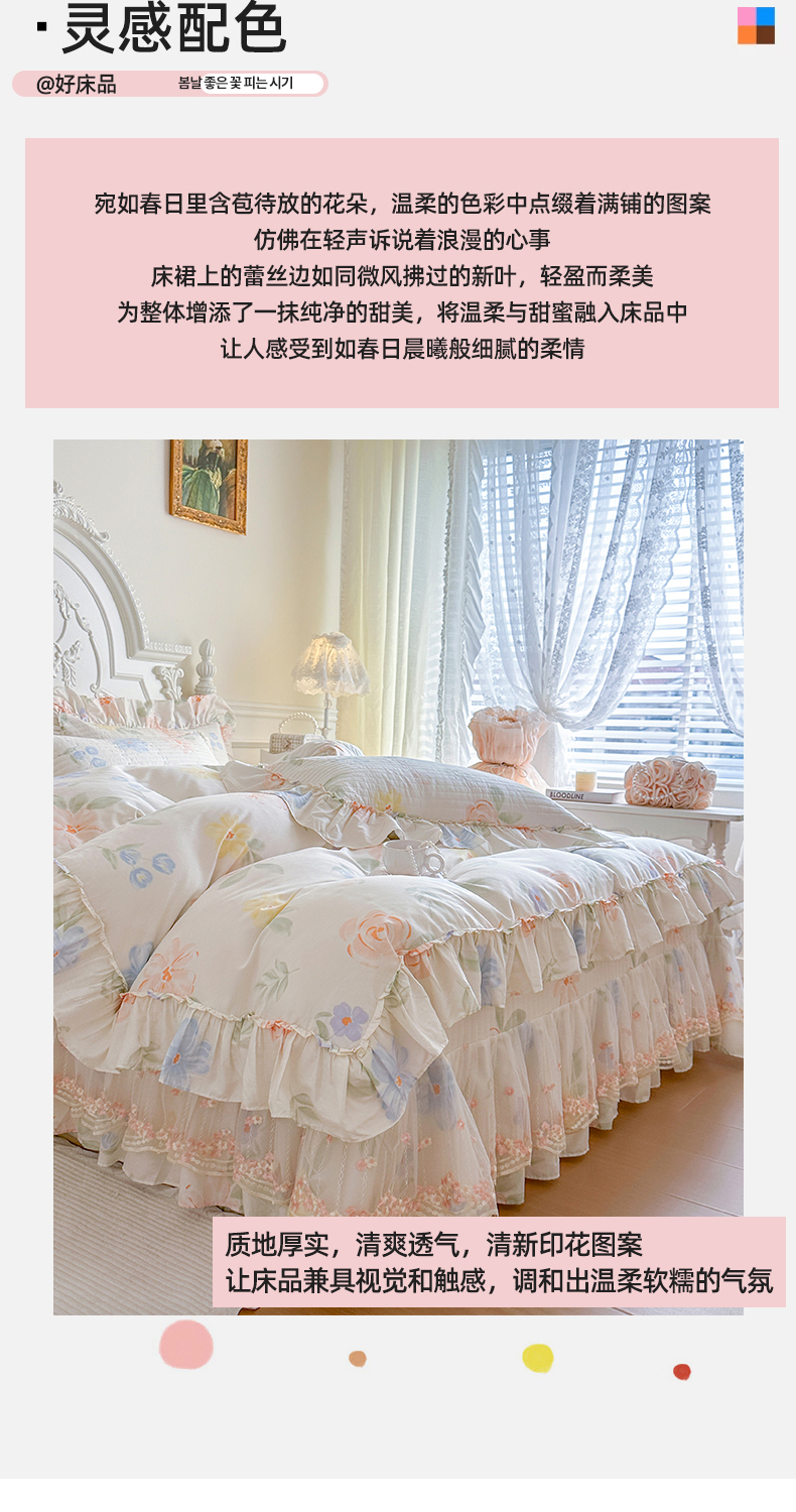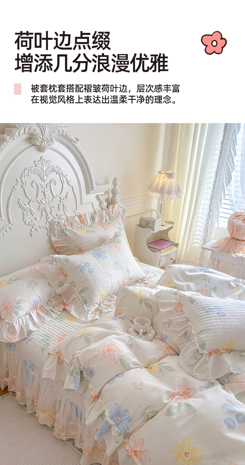 (总)网红馆(ck家纺) 2026春夏新款小清新全棉印花床裙四件套,花蔓蓝,蕾丝花海,翩翩花语,清风花影,甜心花朵,幸福花海