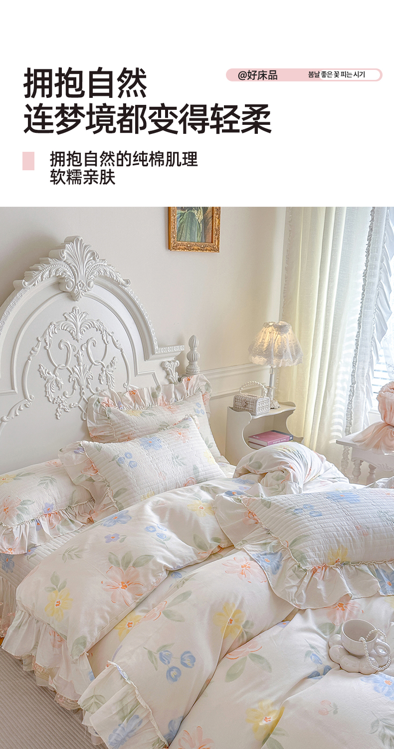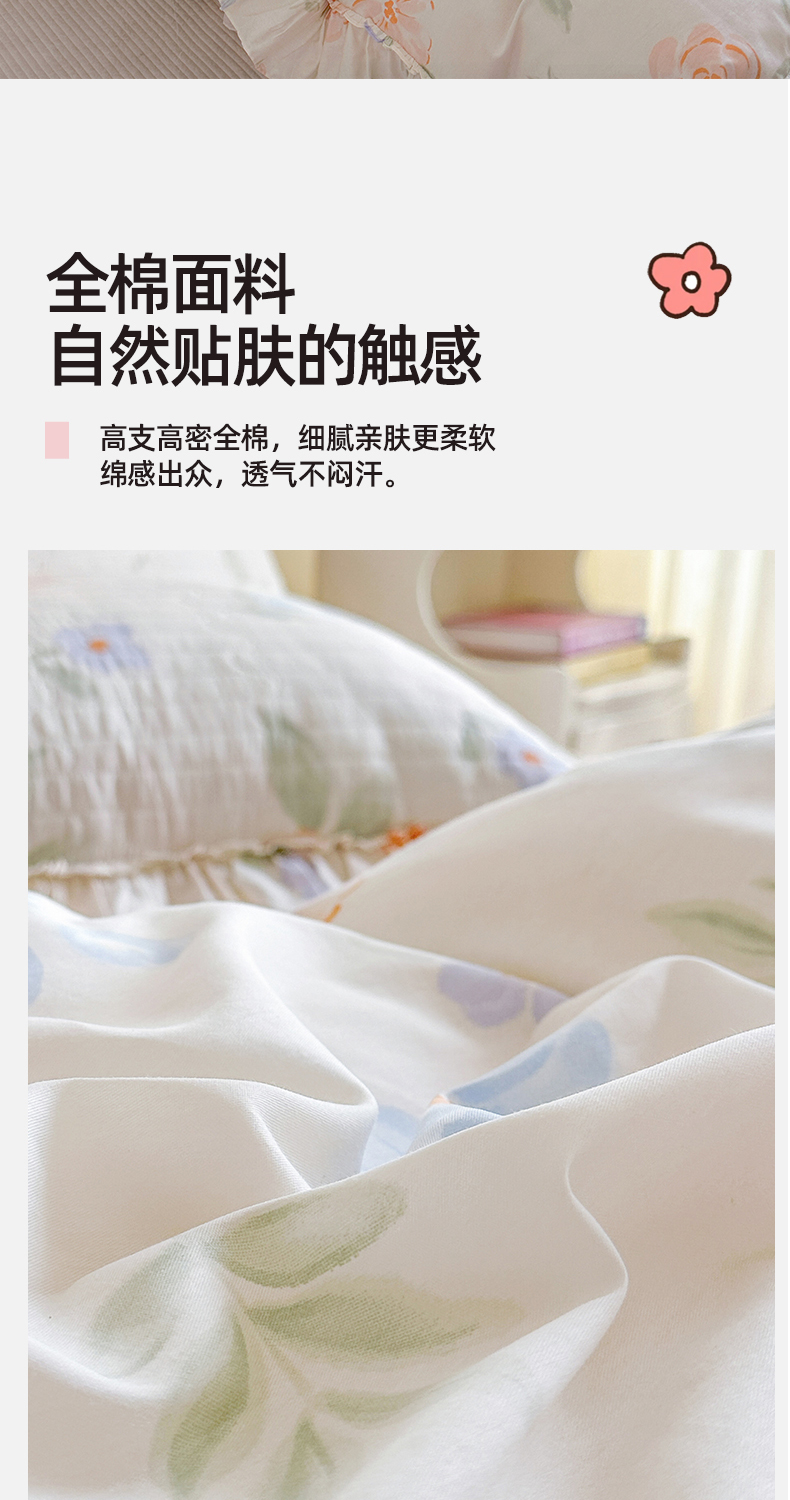 (总)网红馆(ck家纺) 2026春夏新款小清新田园全棉印花床盖四件套,花蔓蓝,蕾丝花海,翩翩花语,清风花影,甜心花朵,幸福花海