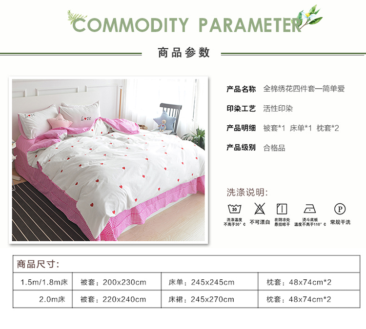 商品名称:艾米家居 全棉绣花四件套简单爱