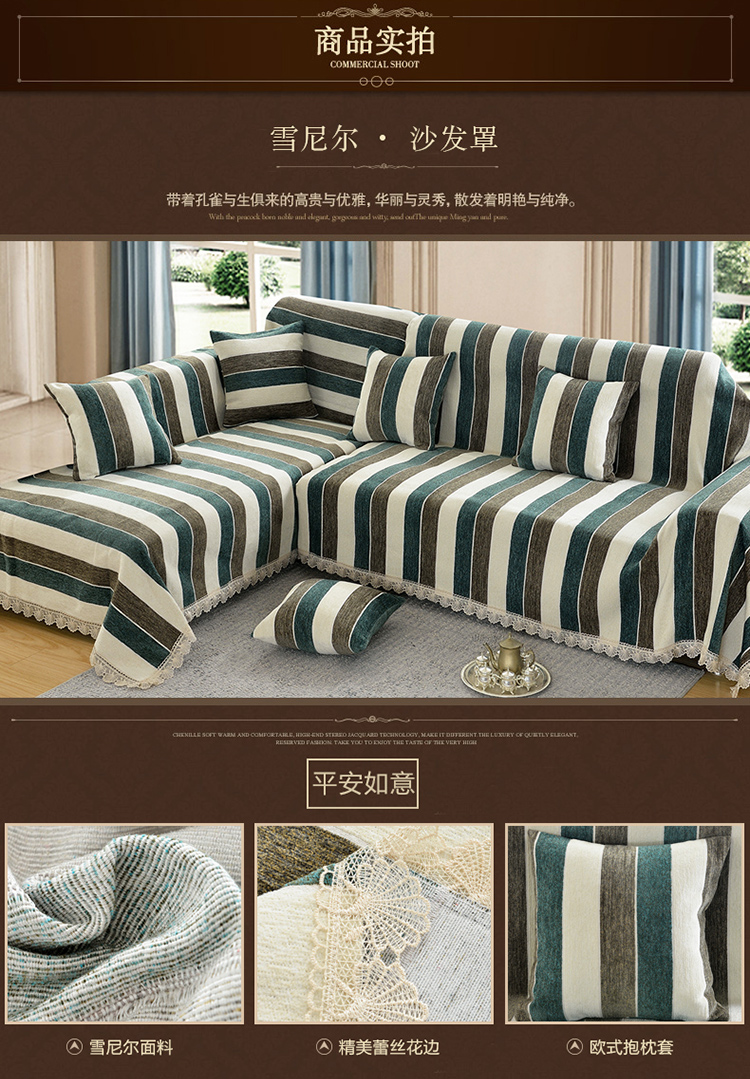 启博家纺 2022加厚提花全盖雪尼尔沙发巾沙发垫沙发套沙发罩 素菲-咖啡条,素菲-咖啡条,45*45抱枕套子
