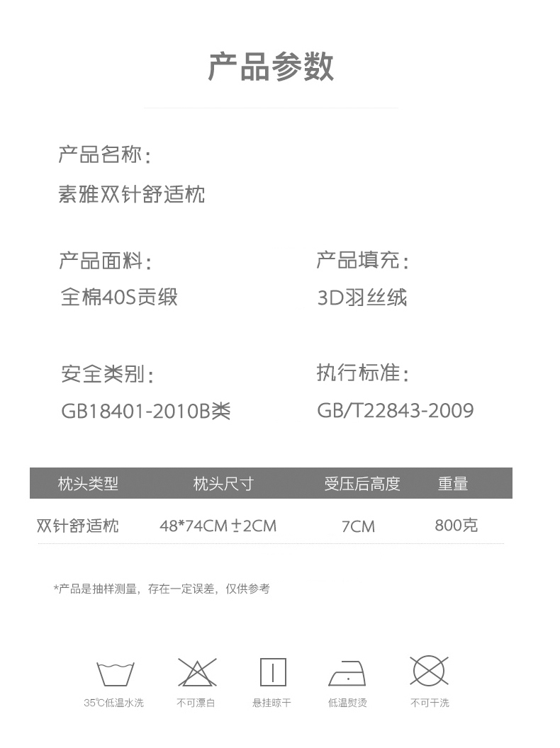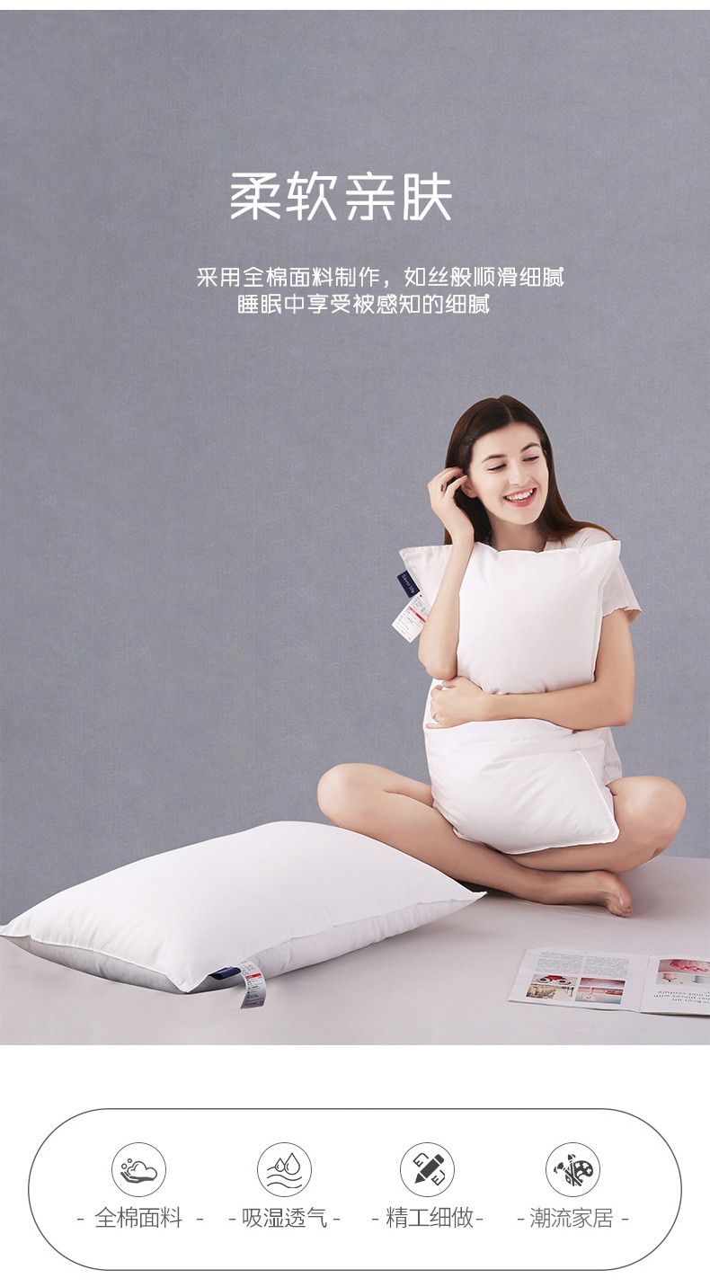 商品名称:全棉贡缎双针护颈羽丝绒枕芯可水洗护颈枕头单人舒适软枕