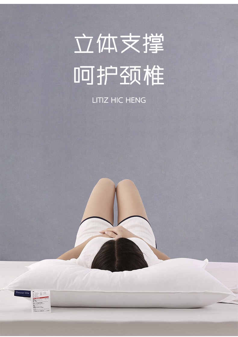 全棉贡缎双针护颈羽丝绒枕芯可水洗护颈枕头单人舒适软枕