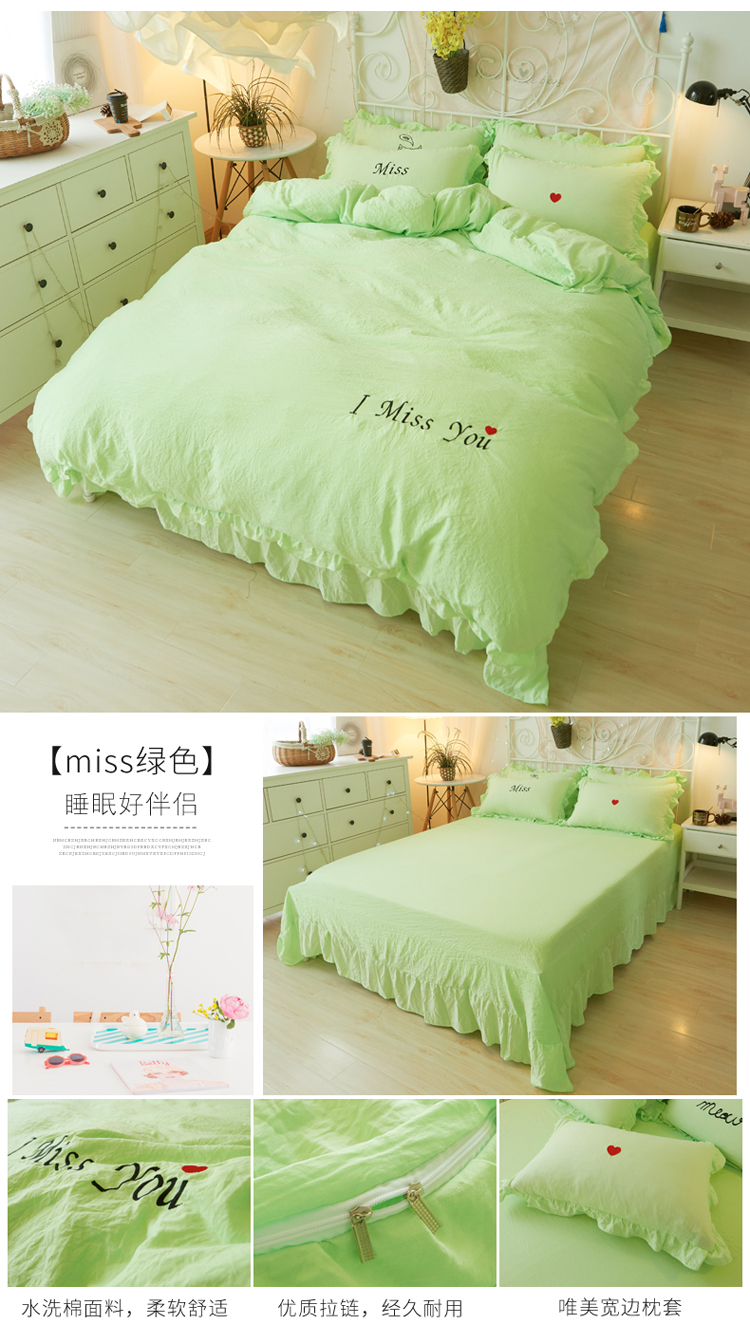 简爱家纺 2025新款水洗棉绣花四件套床单款 miss绿色