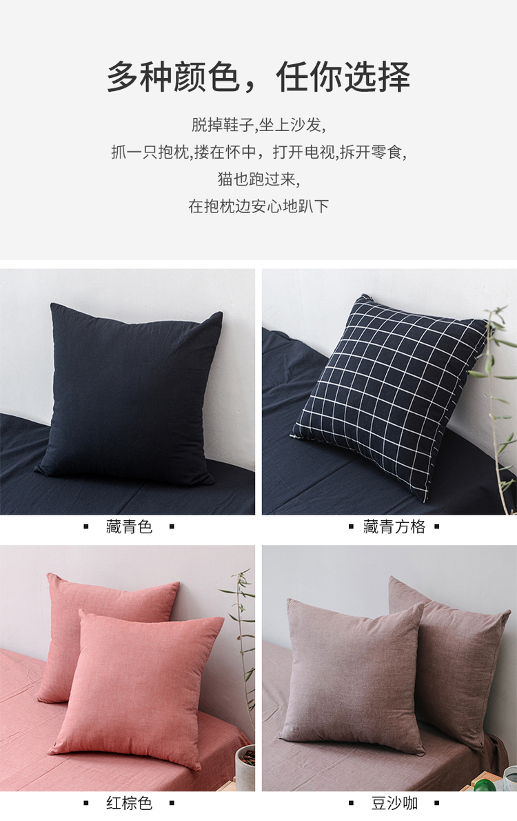 商品名称:柠萌家居 全棉色织水洗棉抱枕套枕套纯色系列一对