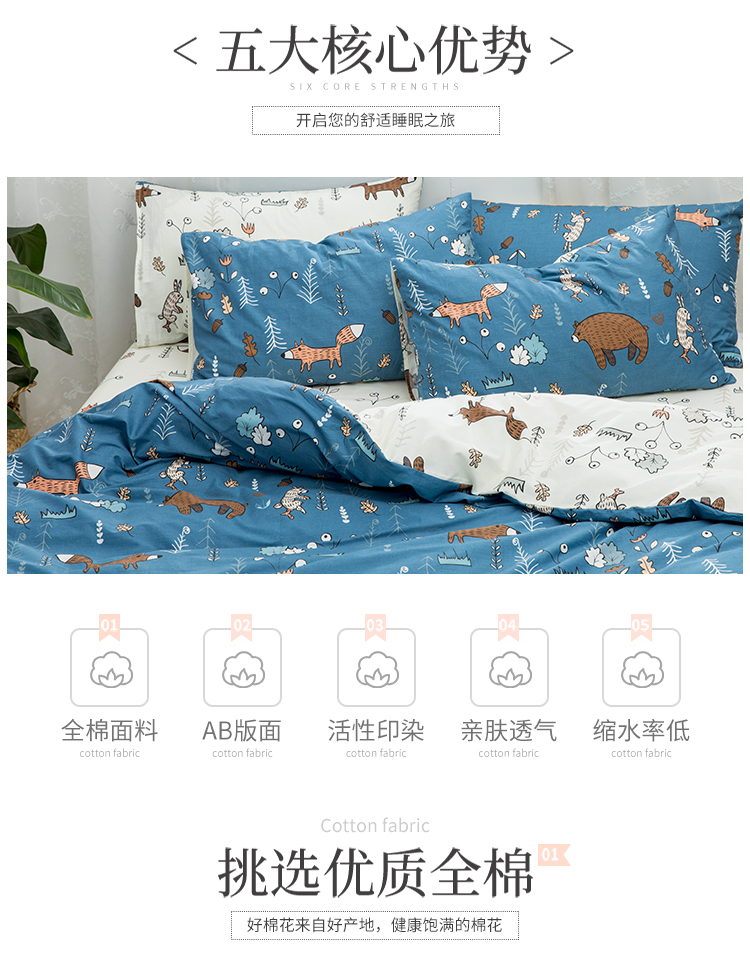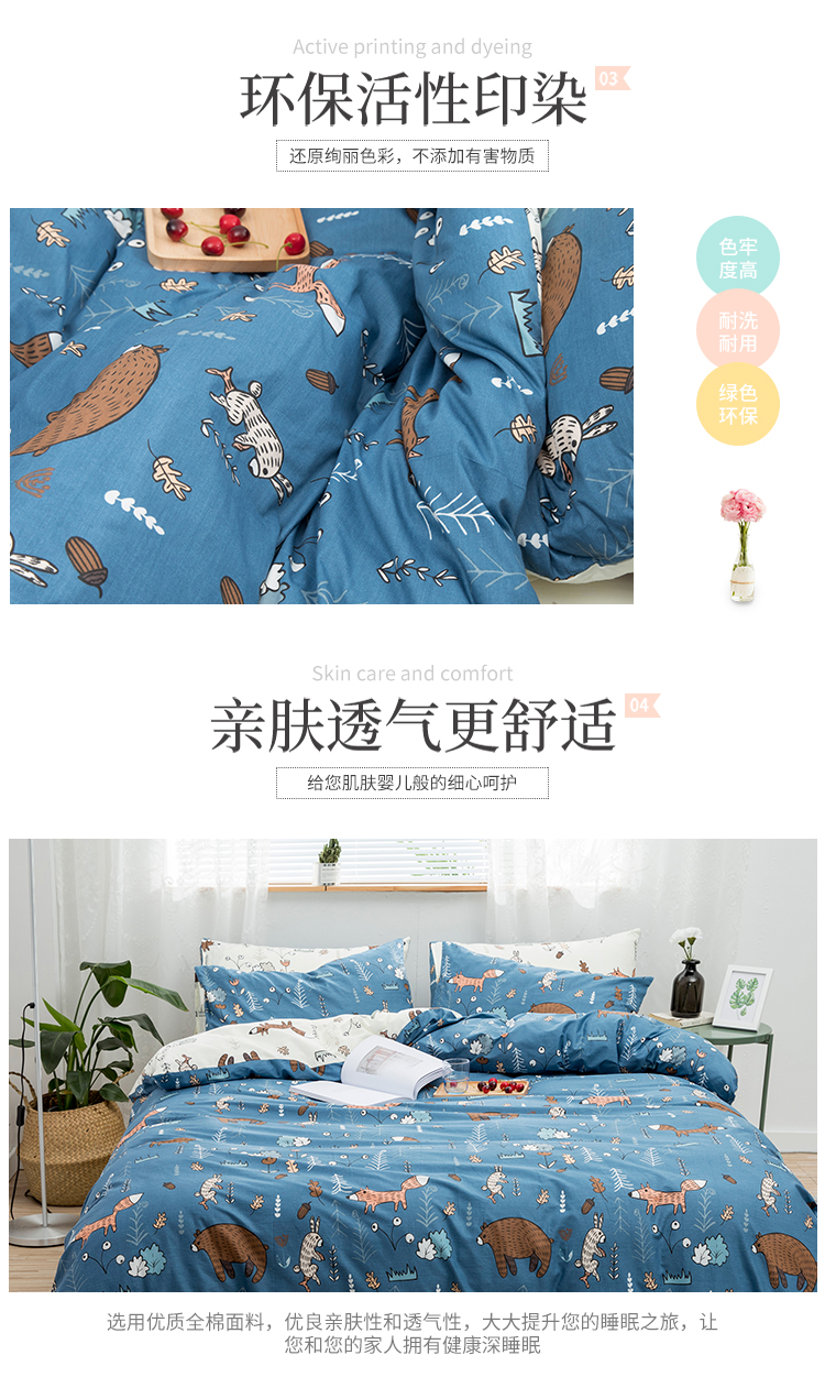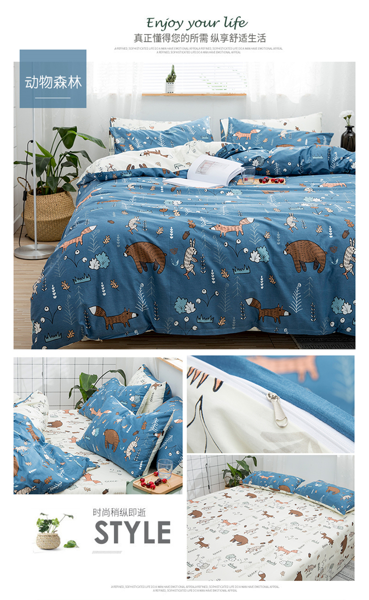 (总)感遇家纺 2021新款小清新卡通系列四件套,饼干森林,快乐星球,长颈鹿