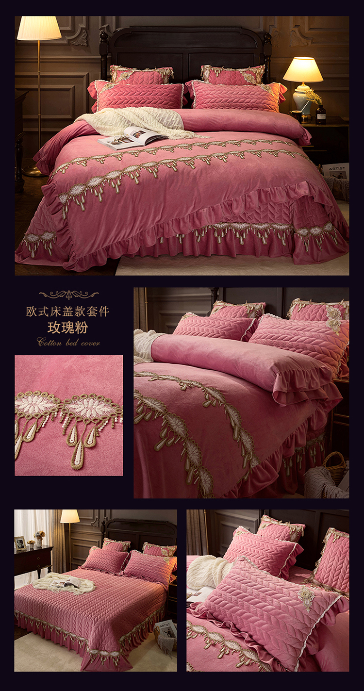 商品名称:菊上家纺 2019法式浪漫贵妃绒系列单品床盖四件套 玫瑰粉