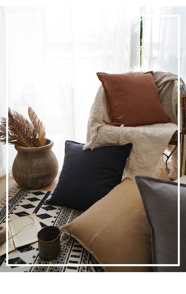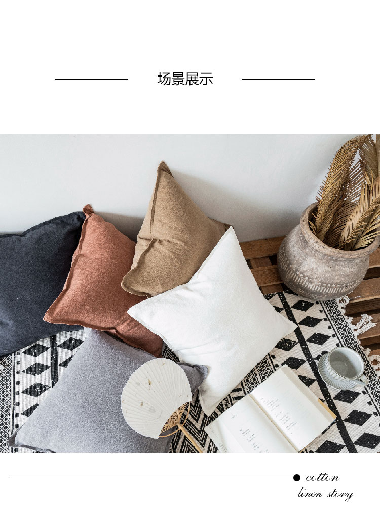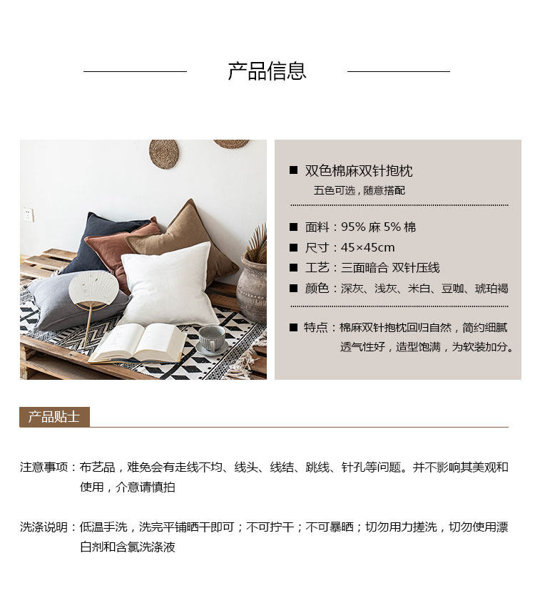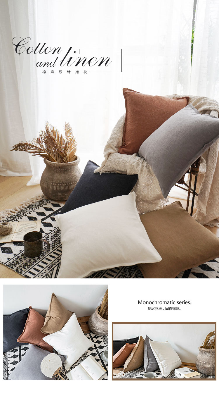 (总)美茉家居 2023新款棉麻双针抱枕,湖蓝,酒红,麻本,摩卡棕,土褐