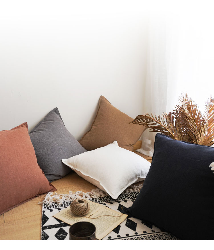美茉家居经典棉麻纯色靠垫亚麻素色抱枕水洗麻棉腰靠