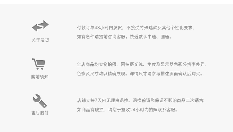 云仓服务3:享急速发货,18点之前下单,2小时内发货,保证发货时效;