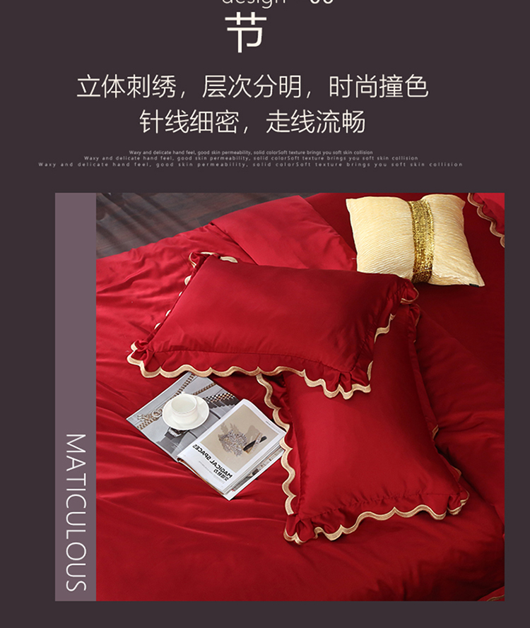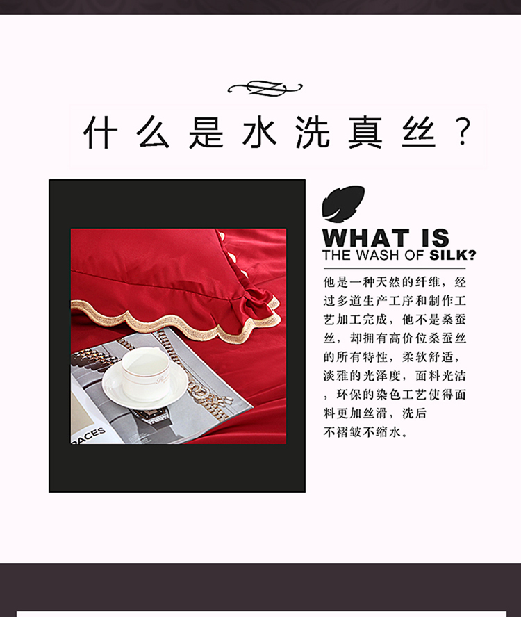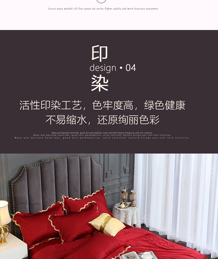 米奈家居2020新品水洗真丝瑞内系列四件套 红