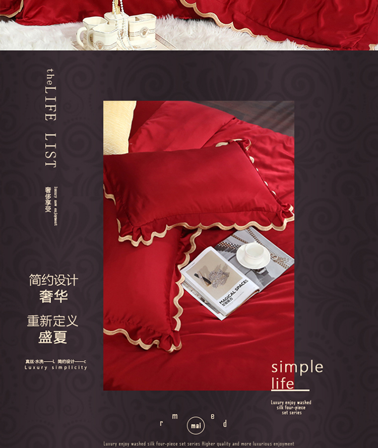 商品名称:米奈家居2020新品水洗真丝瑞内系列四件套 红