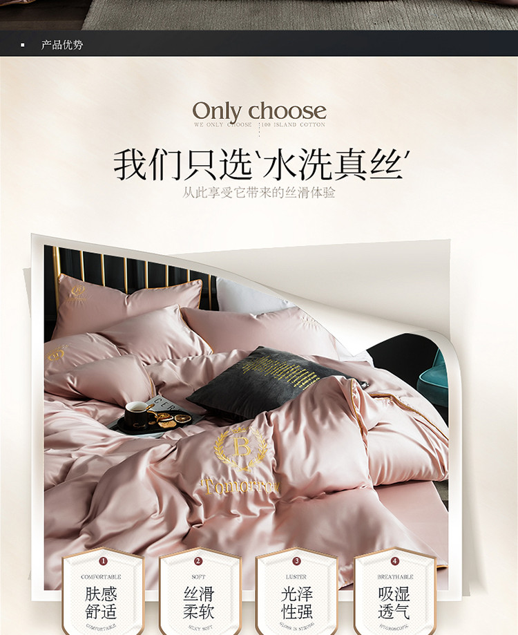 商品名称:琪格格 2022新款水洗真丝刺绣四件套 都市-香槟