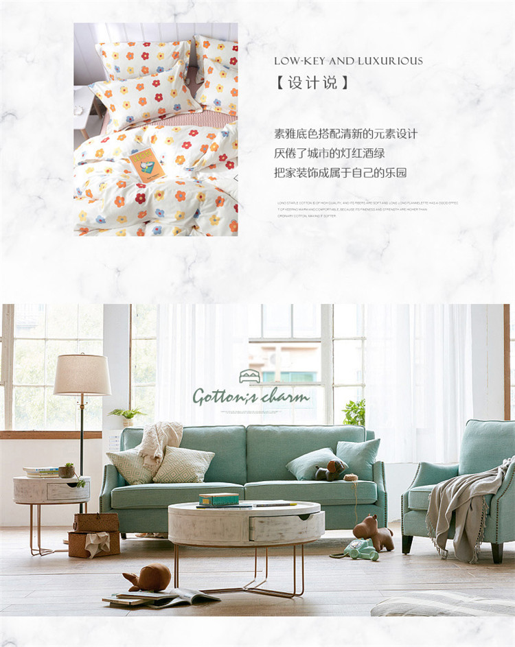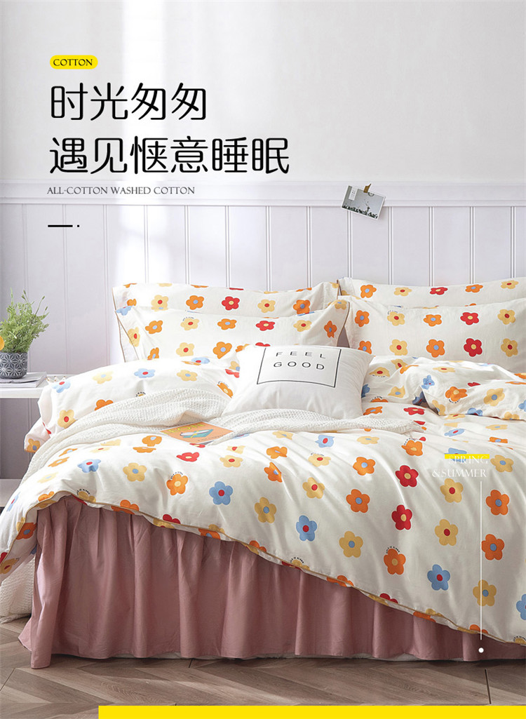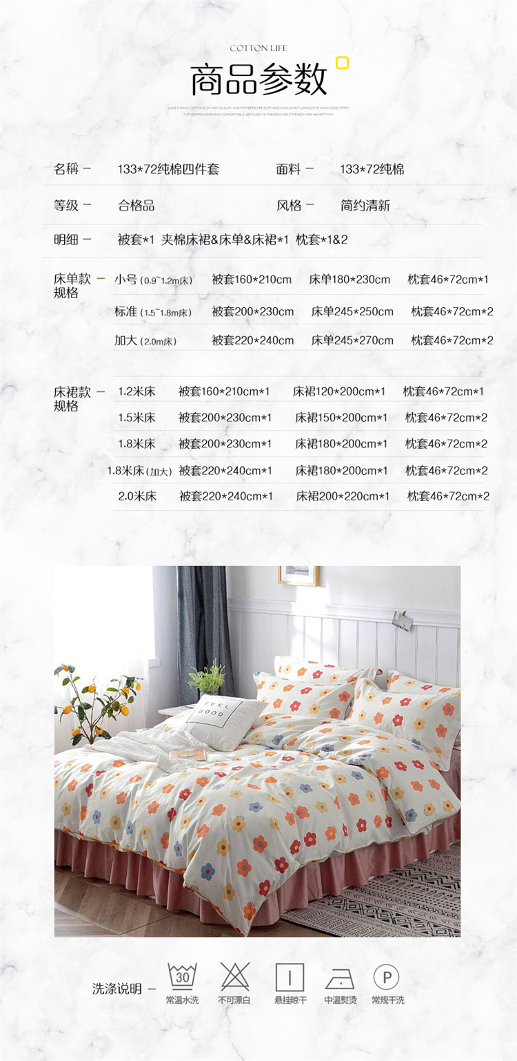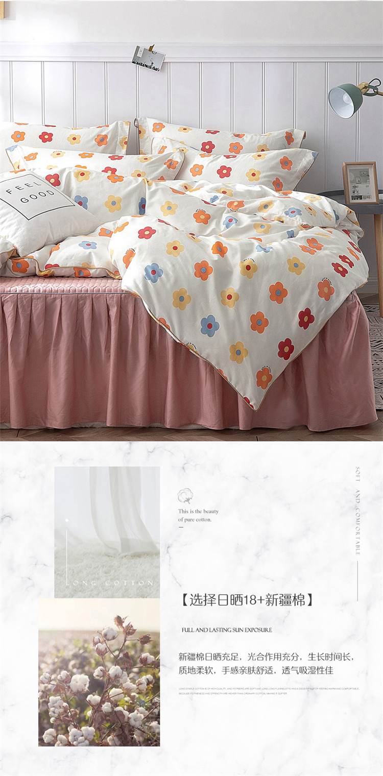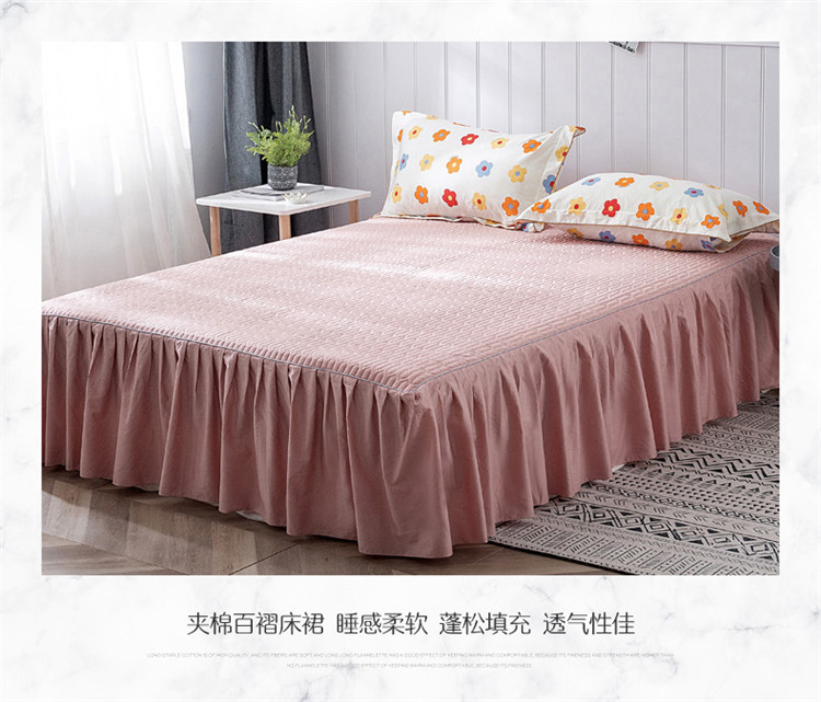 商品名称:万盛家纺 全棉滚绳款夹棉床裙四件套 朵阳