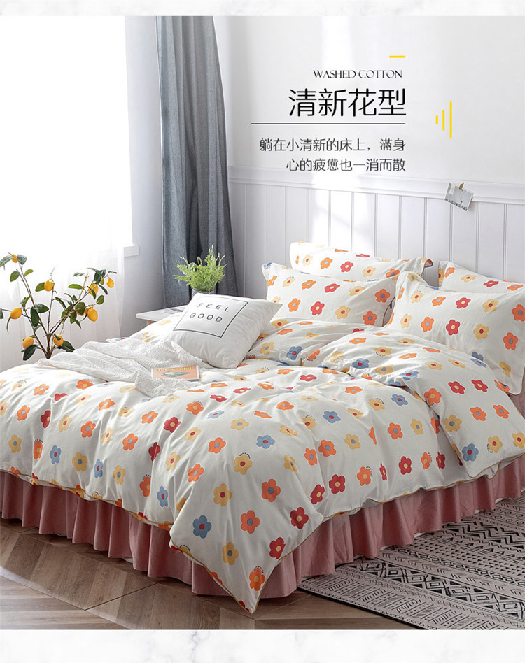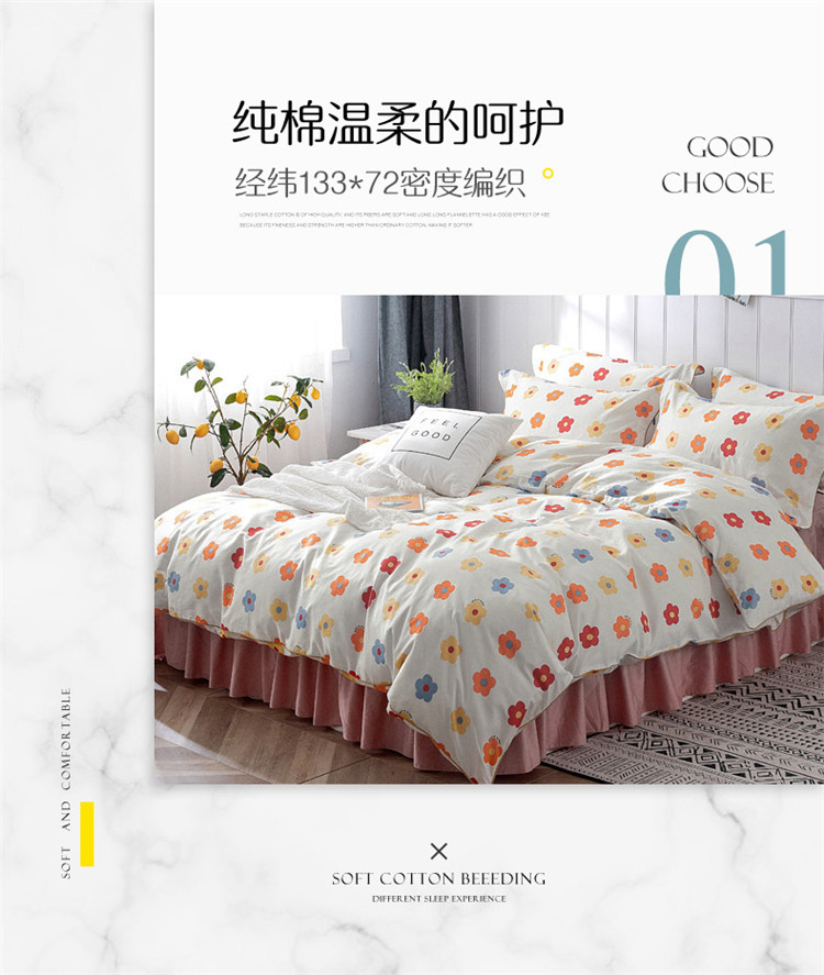 万盛家纺 全棉滚绳款夹棉床裙四件套 朵阳