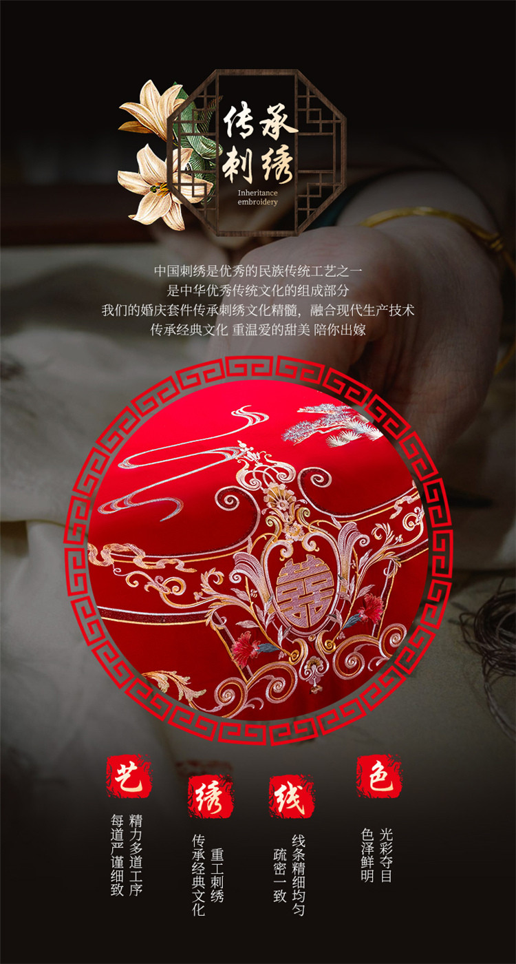 千禧 2024新款贡缎磨毛婚庆绣花多件套 盛世华庭(彩色绣),盛世华庭(彩色绣)