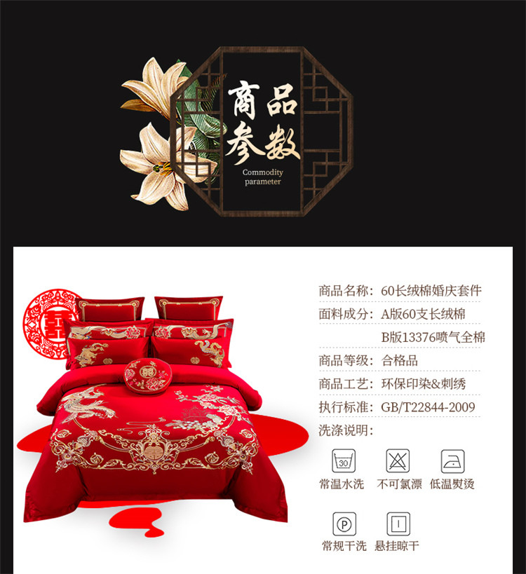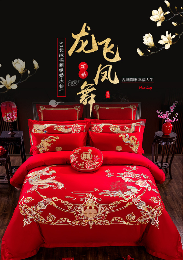 商品名称:千禧家纺 2019新款长绒棉婚庆多件套 龙飞凤舞