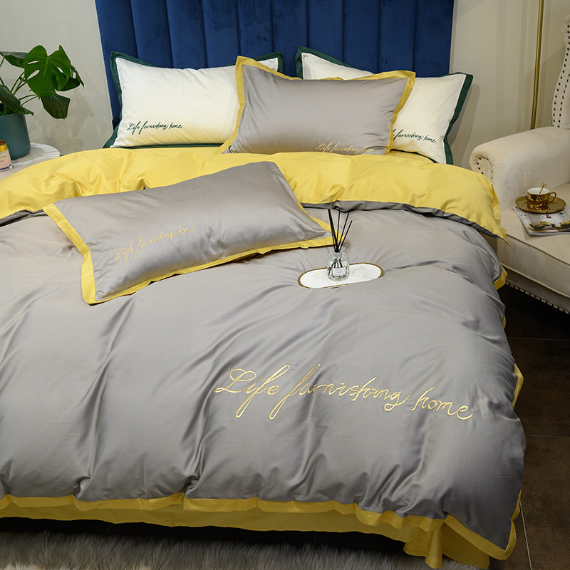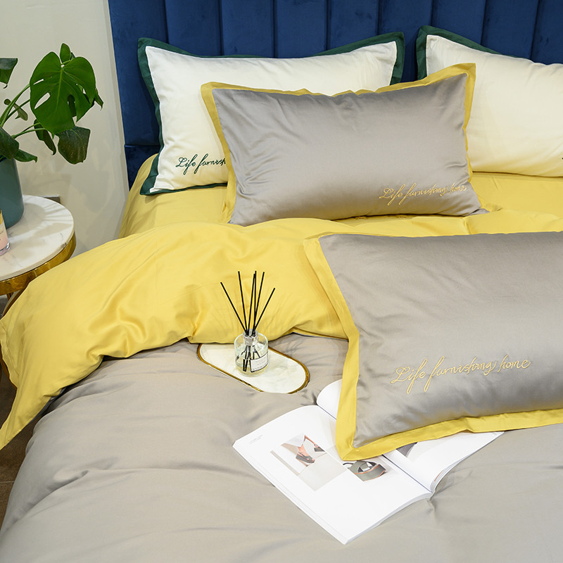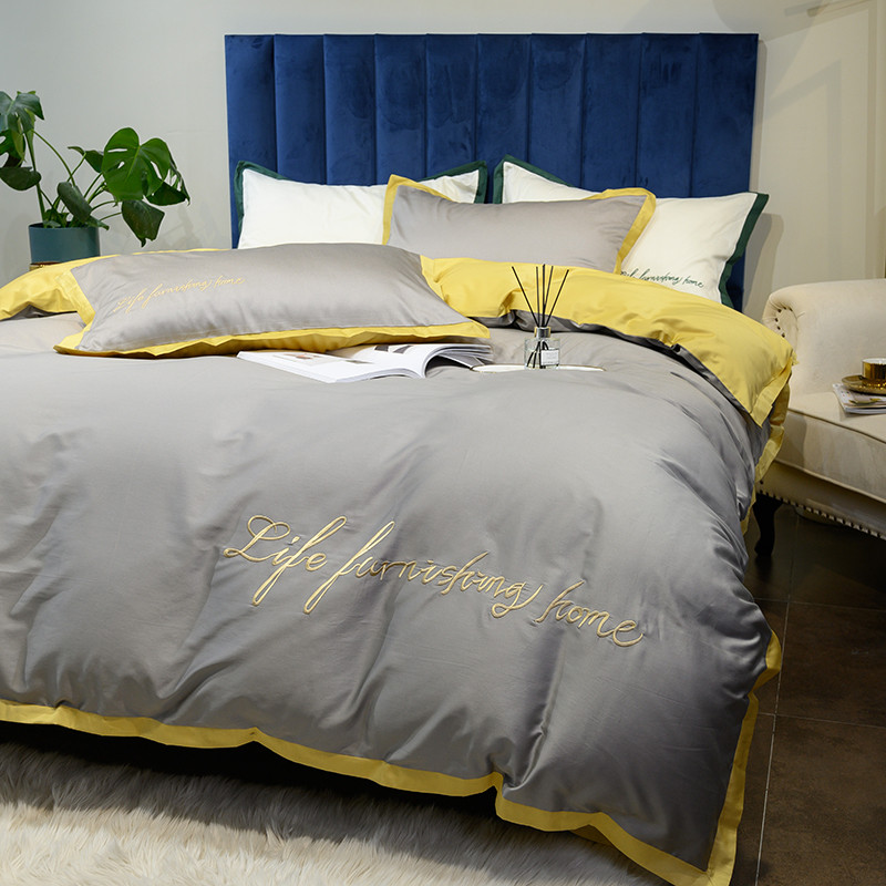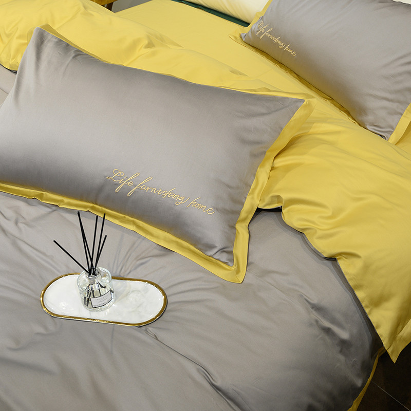 太古汇 60支贡缎长绒棉纯色双拼四件套棚拍图 蒂度灰
